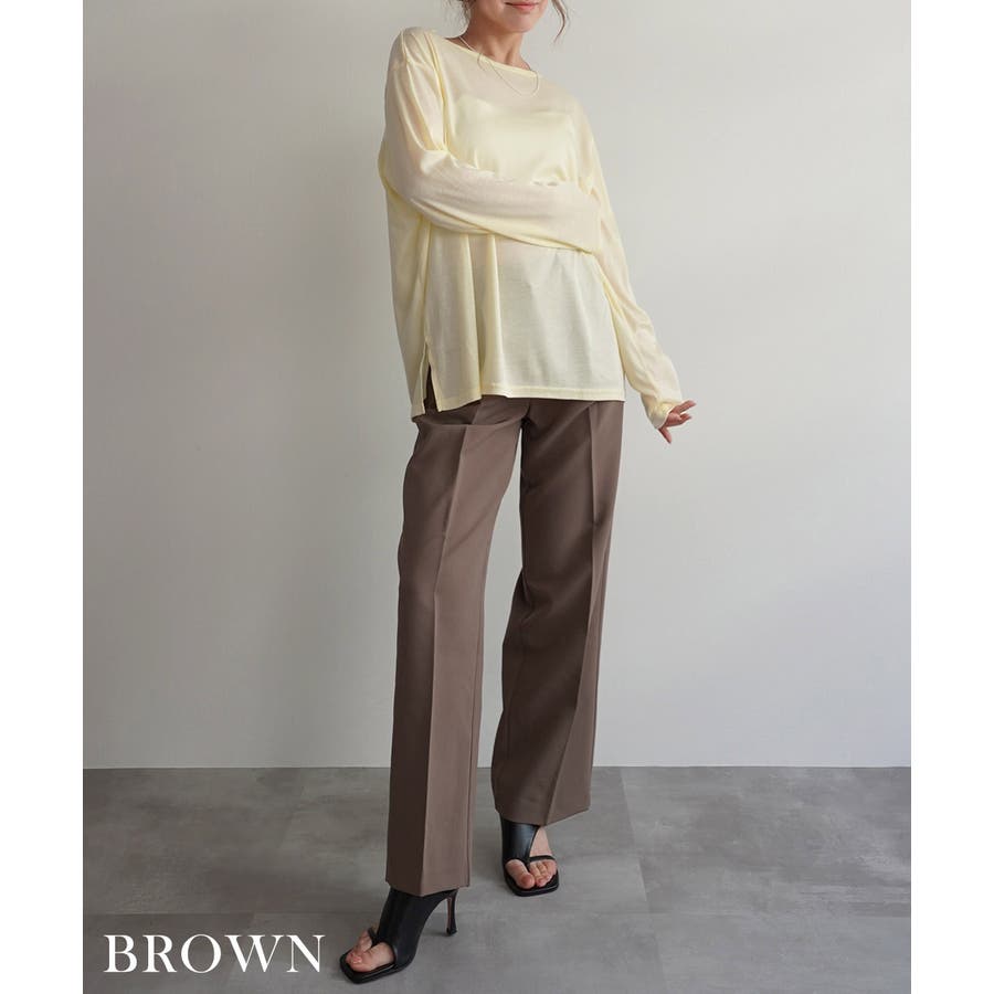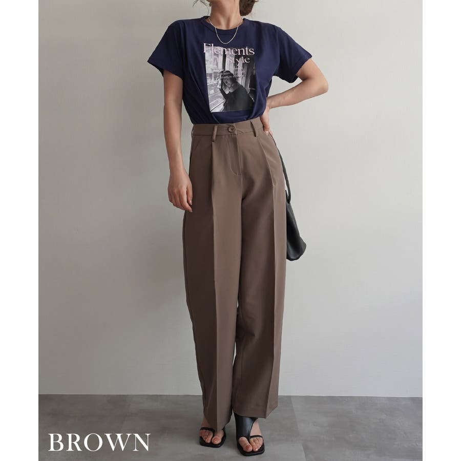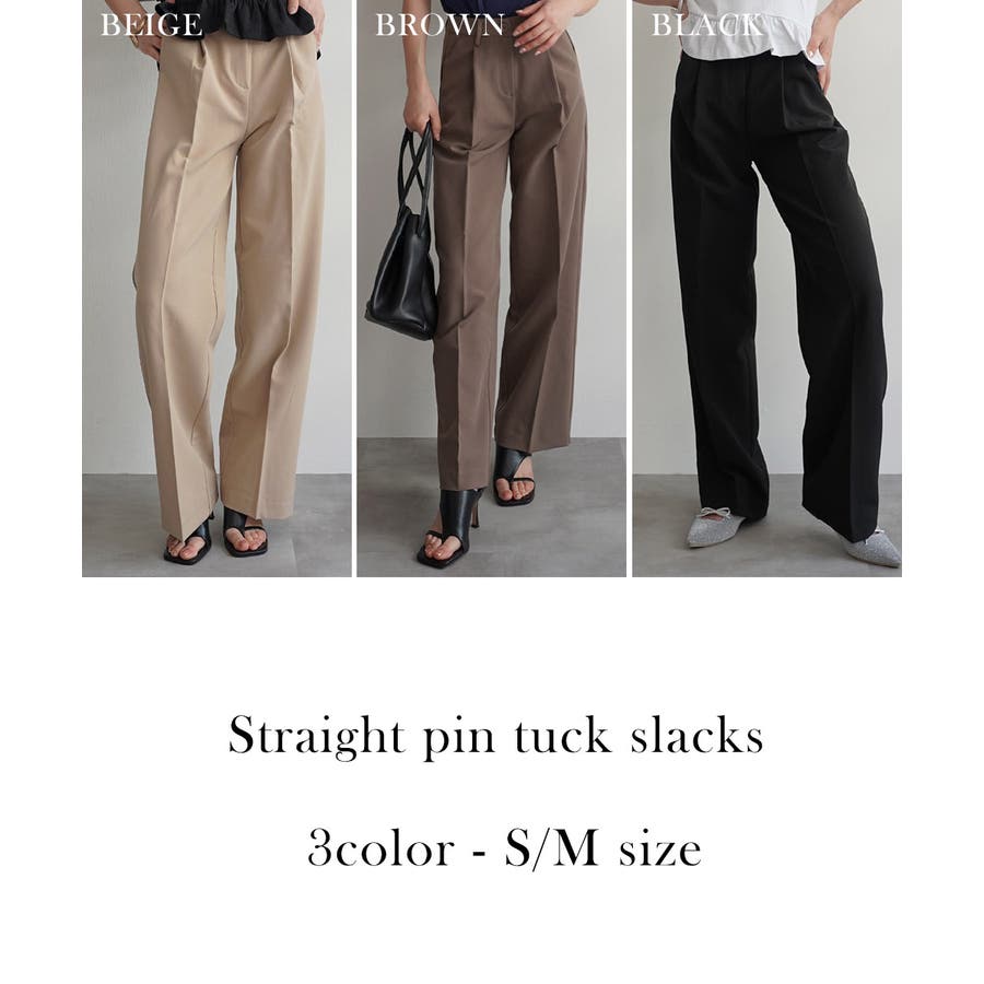 トレンド/スタイルアップ/体型カバー/定番/ベーシック/ナチュラル/カジュアル/大人カジュアル/きれいめカジュアル/シンプル/オフィス/オフィスカジュアル/デイリー/フォーマル/WEB限定/ボトム/パンツ/スラックス/ピンタック/チノ/ベージュ/ブラウン/フォーマル/ストレート/細身/韓国