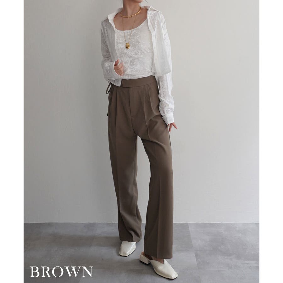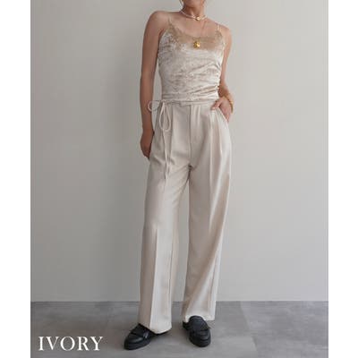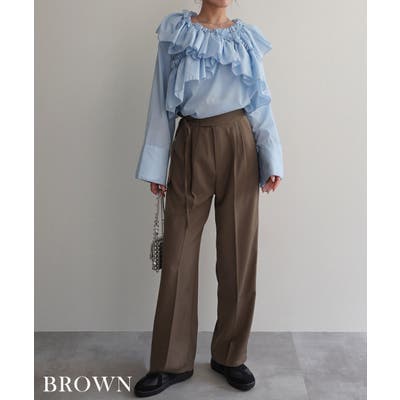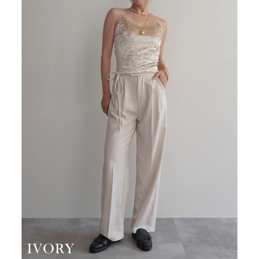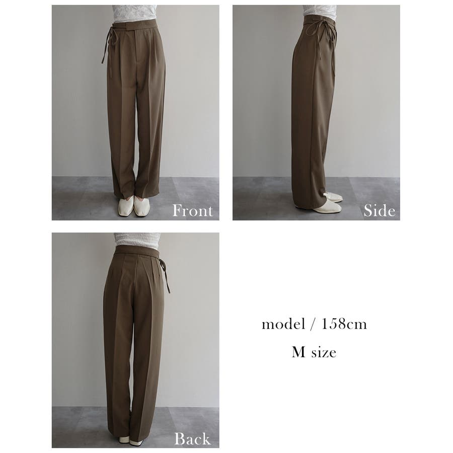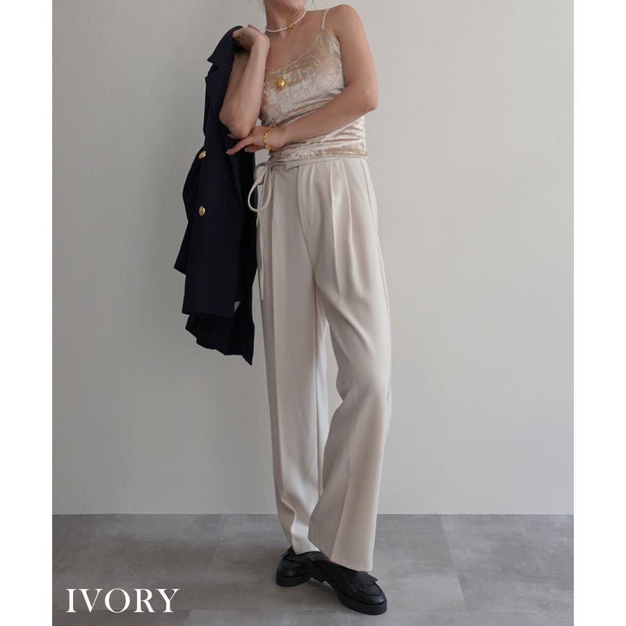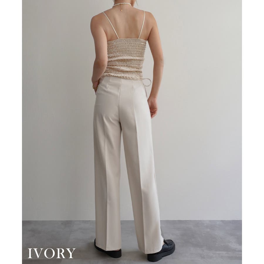 トレンド/スタイルアップ/体型カバー/定番/ベーシック/ナチュラル/カジュアル/大人カジュアル/きれいめカジュアル/シンプル/オフィス/オフィスカジュアル/デイリー/フォーマル/WEB限定/ボトム/ボトムス/パンツ/スラックス/きれいめパンツ/ストレート/センタープレス/ハイウエスト/リボン/ウエストデザイン