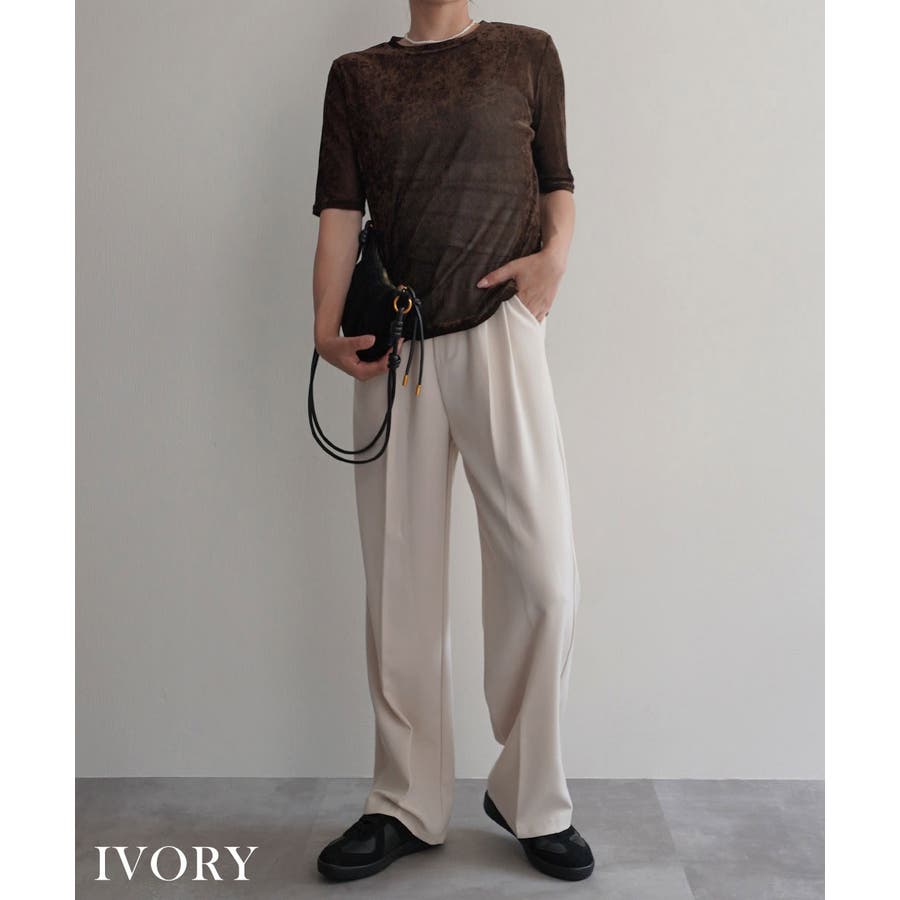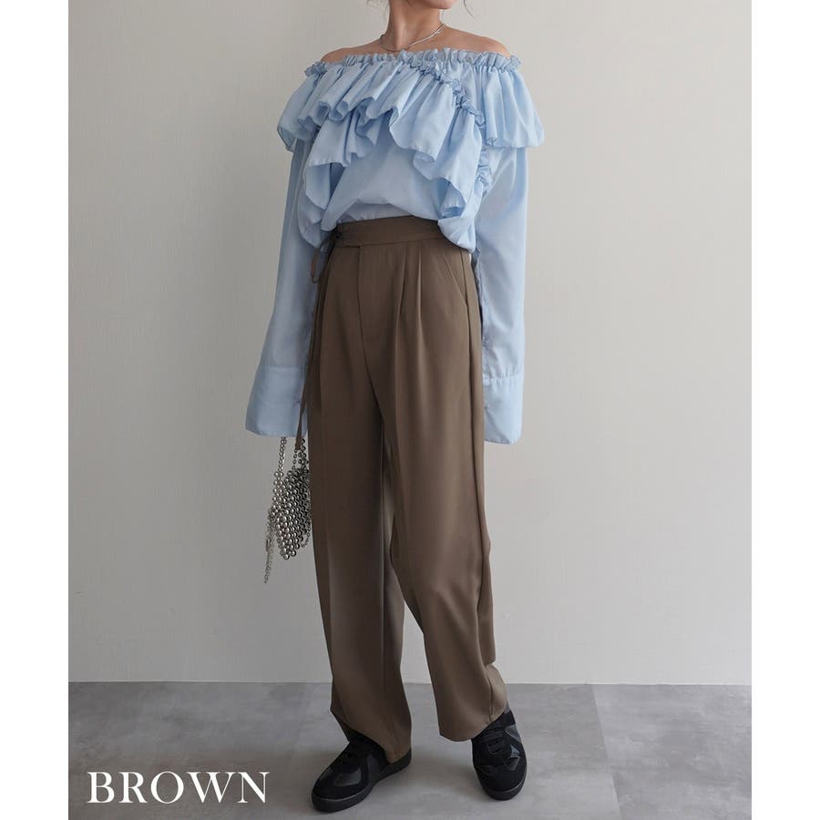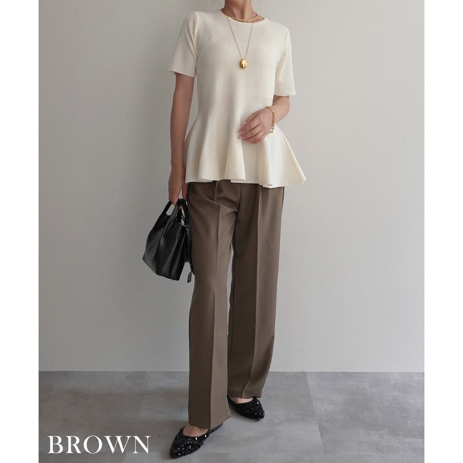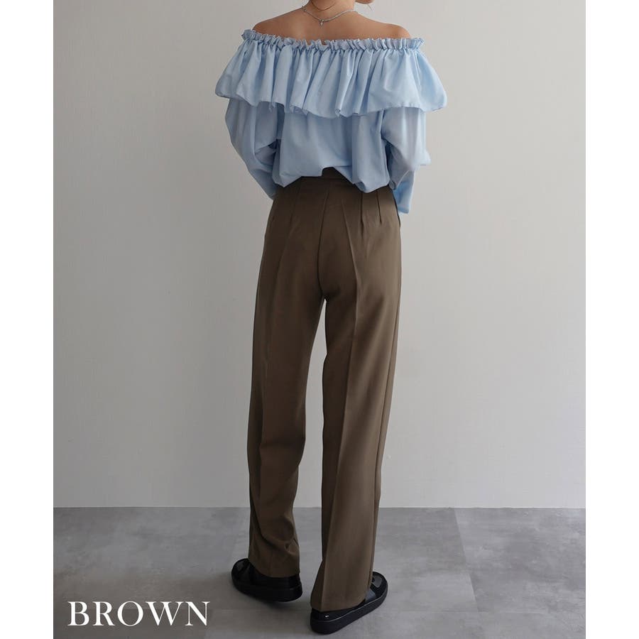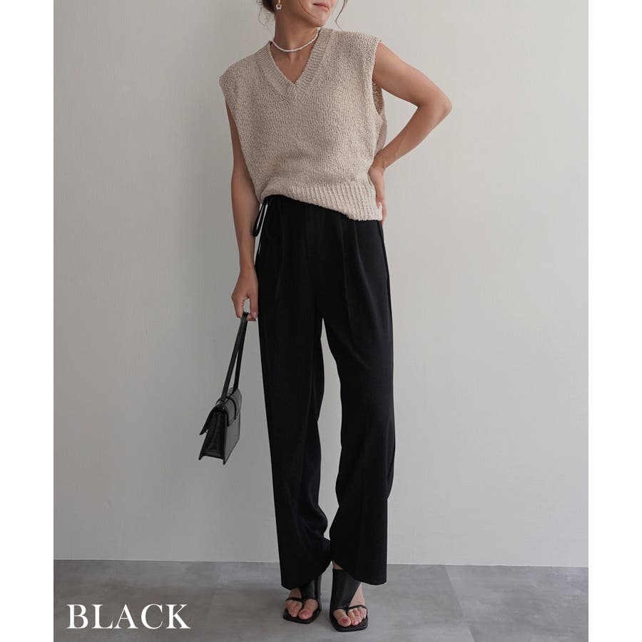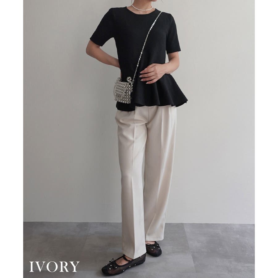 トレンド/スタイルアップ/体型カバー/定番/ベーシック/ナチュラル/カジュアル/大人カジュアル/きれいめカジュアル/シンプル/オフィス/オフィスカジュアル/デイリー/フォーマル/WEB限定/ボトム/ボトムス/パンツ/スラックス/きれいめパンツ/ストレート/センタープレス/ハイウエスト/リボン/ウエストデザイン