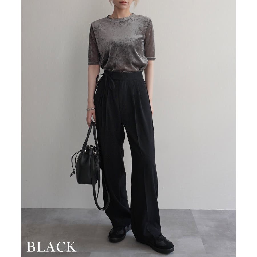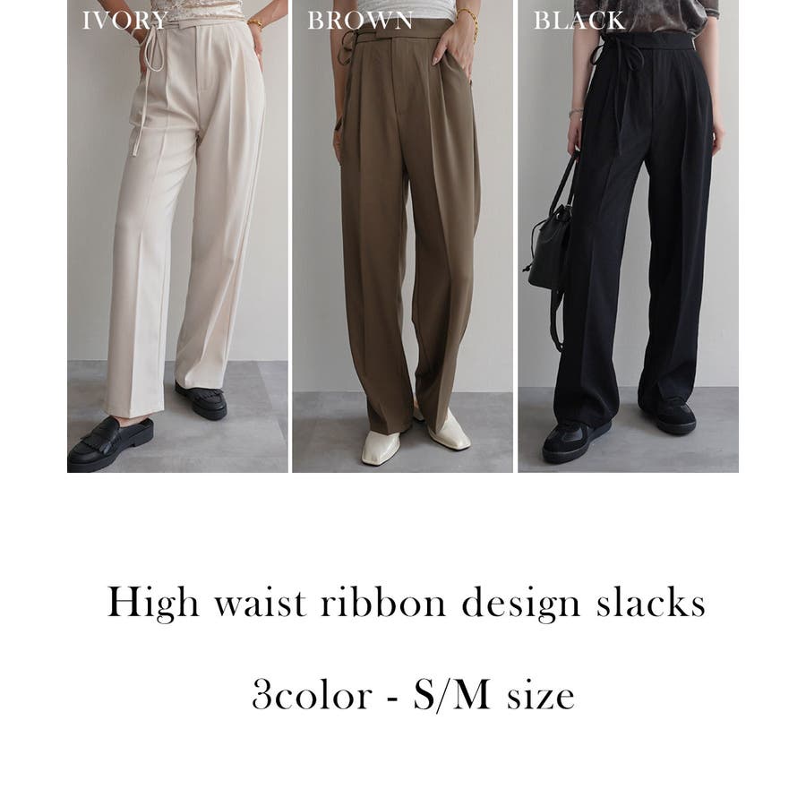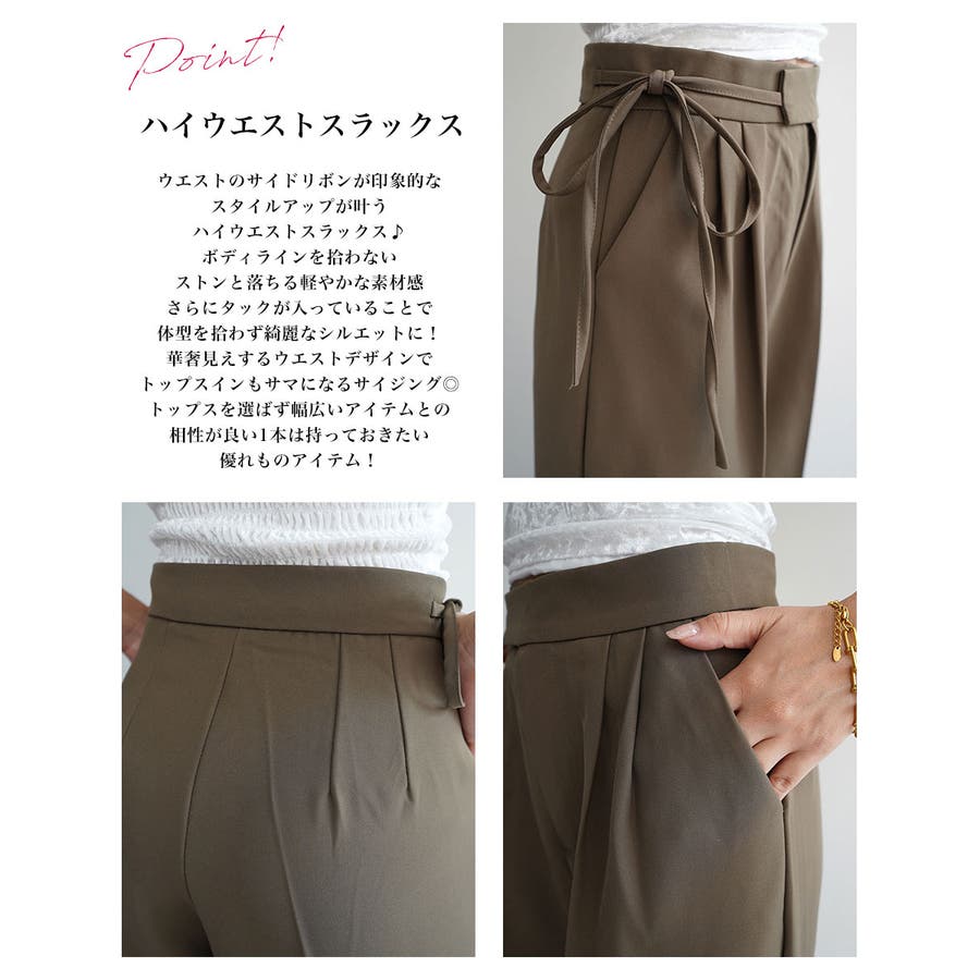 ウエストのサイドリボンが印象的なスタイルアップが叶うハイウエストスラックス♪