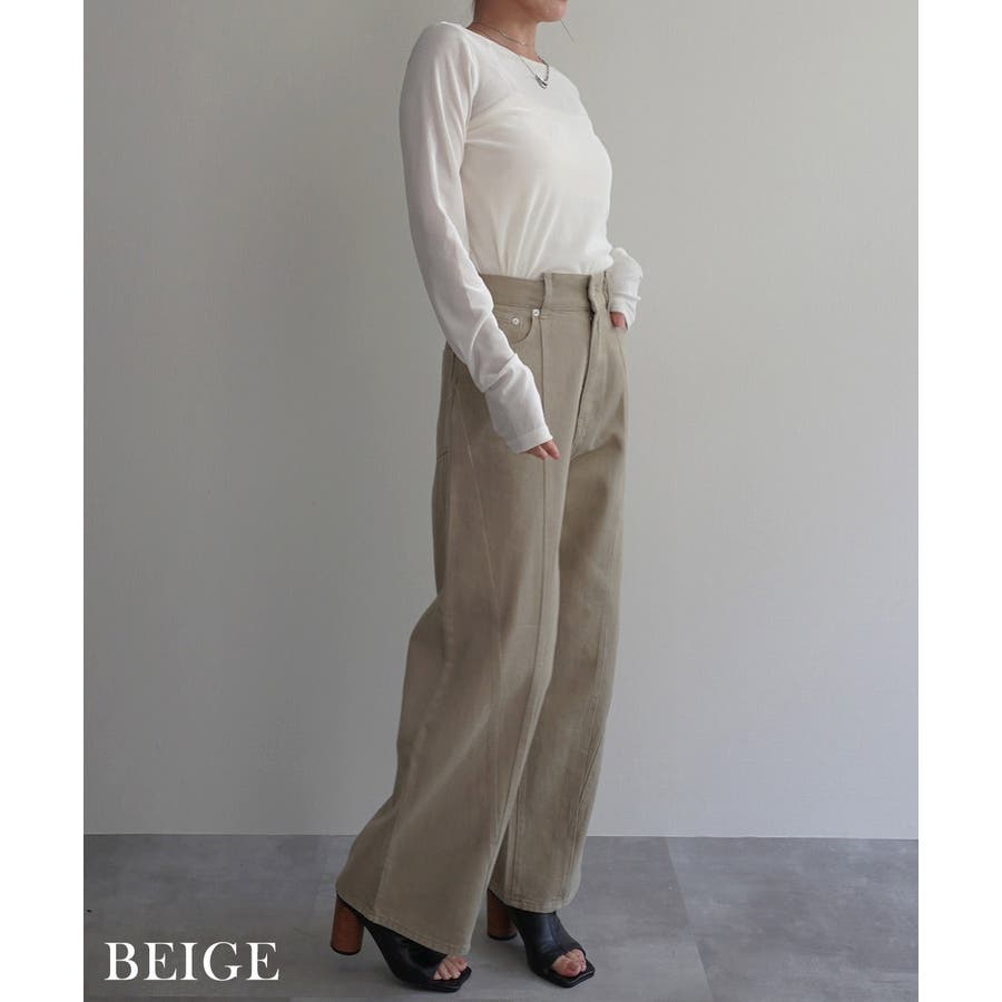 トレンド/スタイルアップ/体型カバー/定番/ベーシック/ナチュラル/カジュアル/大人カジュアル/きれいめカジュアル/シンプル/オフィス/オフィスカジュアル/デイリー/フォーマル/WEB限定/デニム/ボトム/ボトムス/パンツ/ジーンズ/ストレート/センターシーム/センタープレス/ユニークデザイン/ツイル/ツイル生地/淡色/暖色/ブラウンデニム/ベージュデニム/チノパン/ノームコア/メンズライク/細身/秋/秋デニム/晩夏/初秋