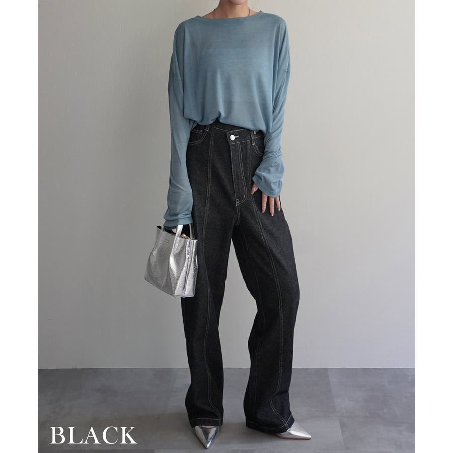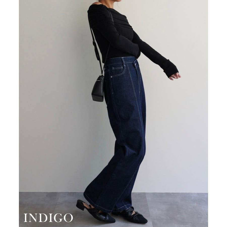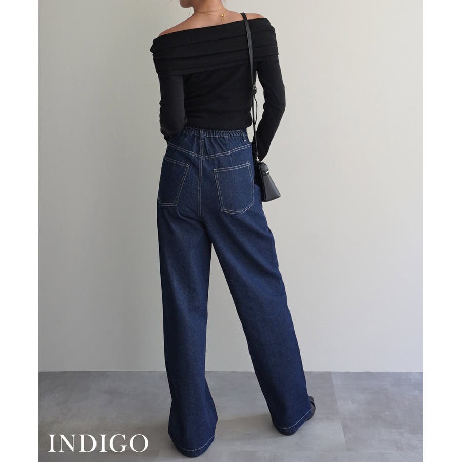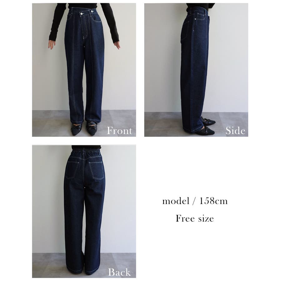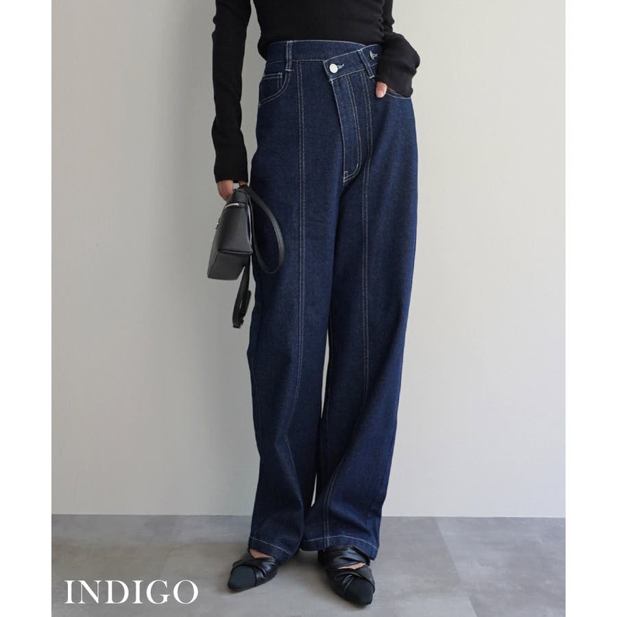 トレンド/スタイルアップ/体型カバー/定番/ベーシック/ナチュラル/カジュアル/大人カジュアル/きれいめカジュアル/シンプル/オフィス/オフィスカジュアル/デイリー/フォーマル/WEB限定/ボトム/ボトムス/ジーンズ/デニム/コットンデニム/インディゴ/ウエスタン/ボーホー/センターライン/センタープレス/ウエストデザイン/アシンメトリー/ハイウエスト/ウエストゴム/ストレート