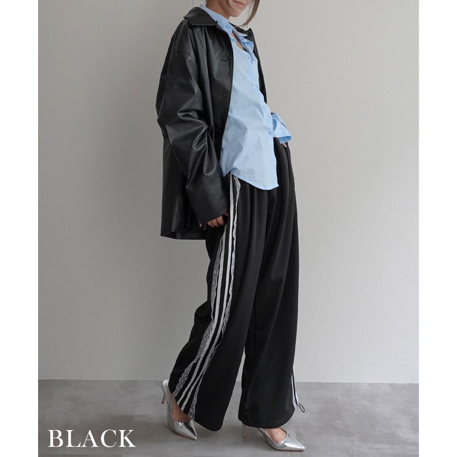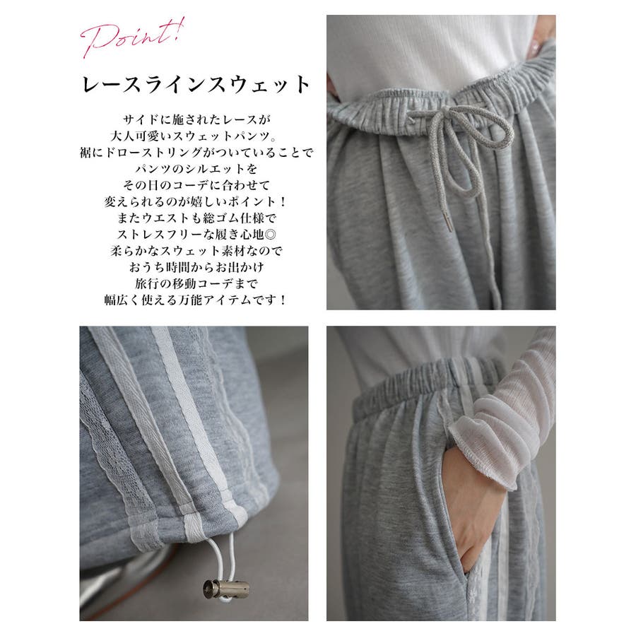 トレンド/スタイルアップ/体型カバー/定番/ベーシック/ナチュラル/カジュアル/大人カジュアル/きれいめカジュアル/シンプル/オフィス/オフィスカジュアル/デイリー/フォーマル/WEB限定/ボトム/ボトムス/パンツ/スウェット/ジョガー/ストレート/2way/サイドライン/トラックパンツ/レース/レースライン/ウエストゴム/ポケット/ポケットあり/ポケット付き/ガーリー/海外/イージー/ワイド/ルーズ/大きめ/ゆったり/ワンマイル/ラフ/