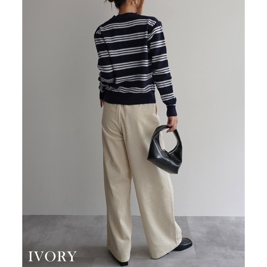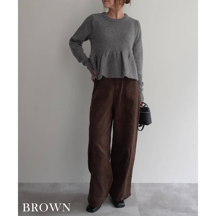 トレンド/スタイルアップ/体型カバー/定番/ベーシック/ナチュラル/カジュアル/大人カジュアル/きれいめカジュアル/シンプル/オフィス/オフィスカジュアル/デイリー/フォーマル/WEB限定/ボトム/ボトムス/パンツ/コーデュロイ/カーブ/コクーン/カープパンツ/バレルレッグ/ハイウエスト/脚長/足長/下半身カバー/ウエストゴム/フリース
