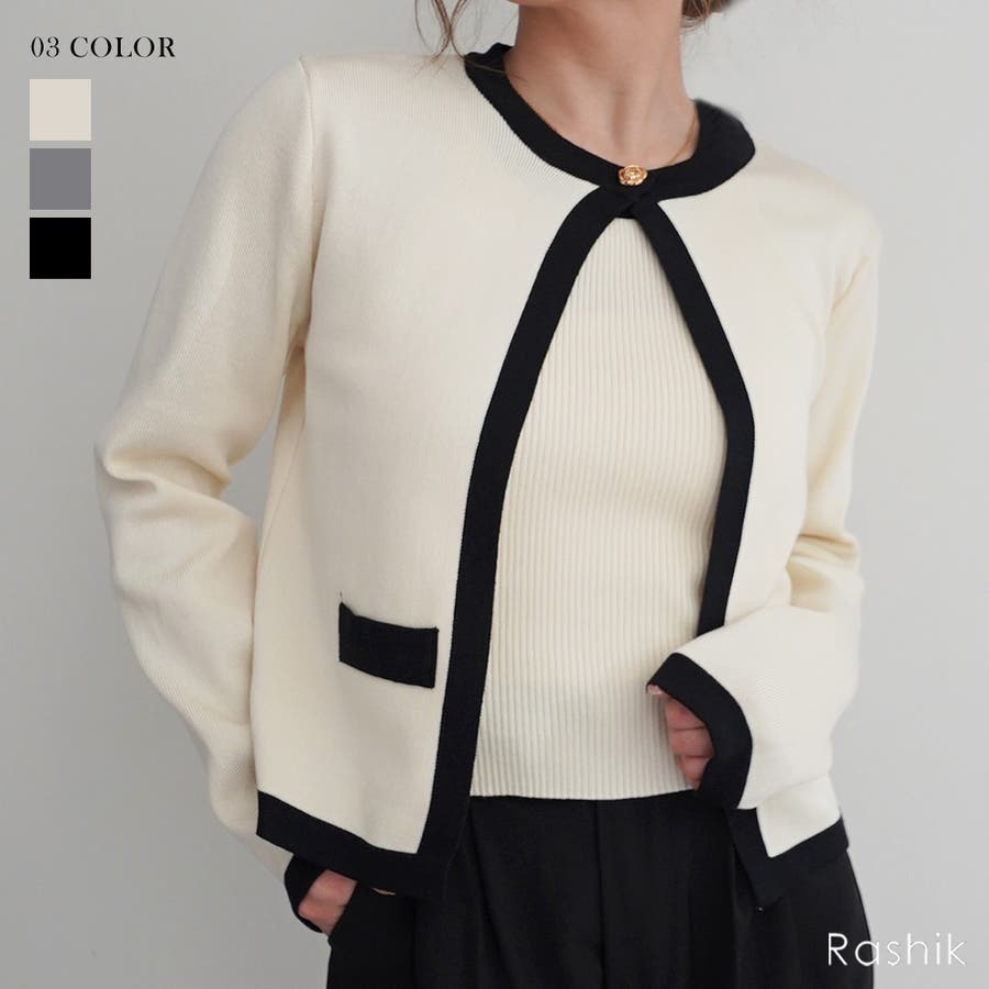 配色ニットアンサンブルRashik カーディガン 大人カジュアル