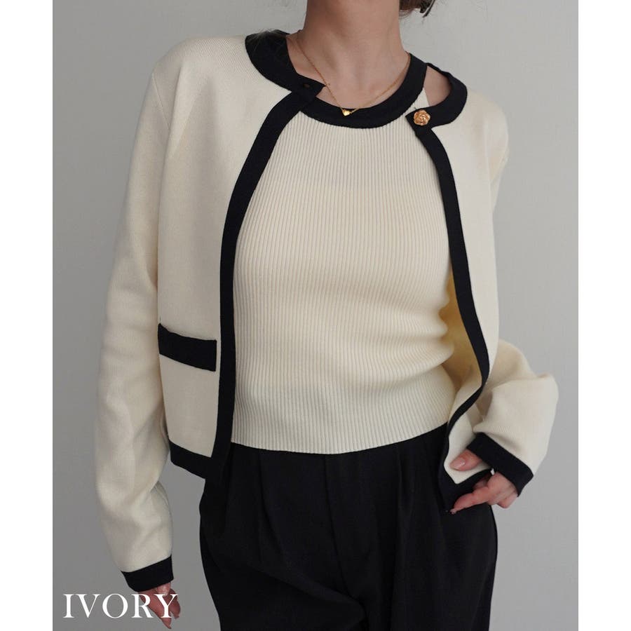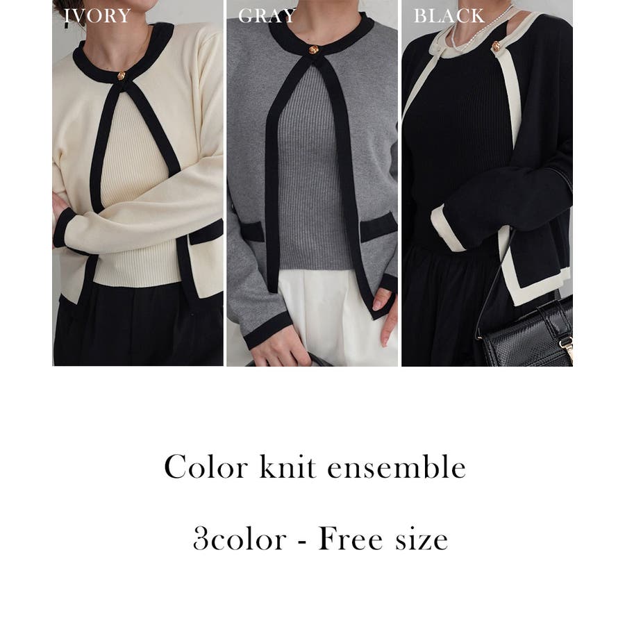 トレンド/スタイルアップ/体型カバー/定番/ベーシック/ナチュラル/カジュアル/大人カジュアル/きれいめカジュアル/シンプル/オフィス/オフィスカジュアル/デイリー/オケージョン/フォーマル/WEB限定/トップス/ニット/カーディガン/アンサンブル/セット/キャミセット/アメスリ/タンクトップ/ノースリーブ/配色/ゴールド/金ボタン/バラ/薔薇/セレモニー/セミフォーマル/レイヤード/クロップド/ショート/卒園式/卒業式/卒入式/入園式/入学式/ママコーデ/ママファッション