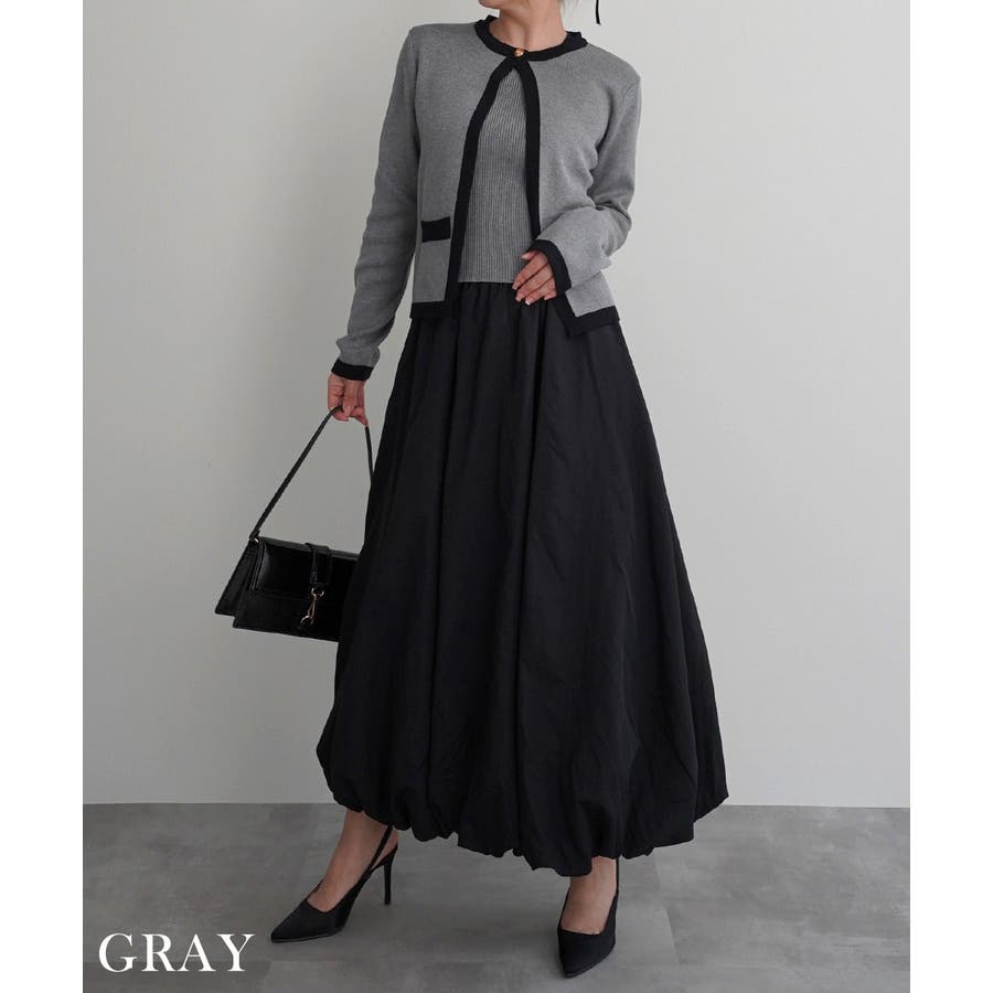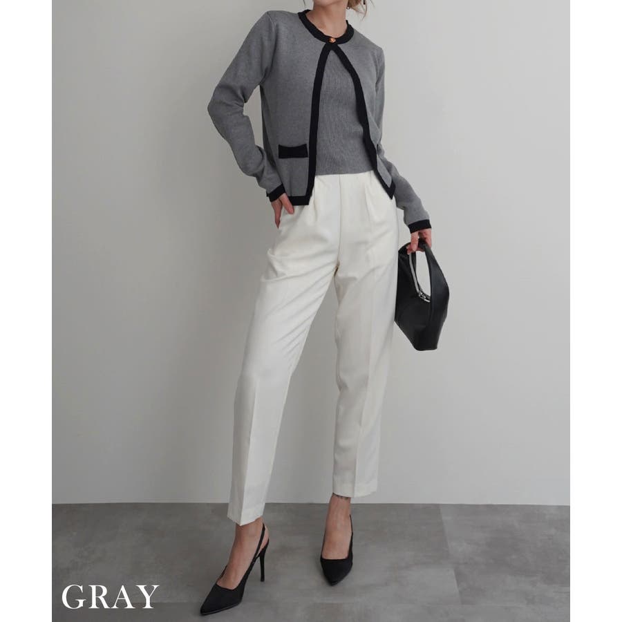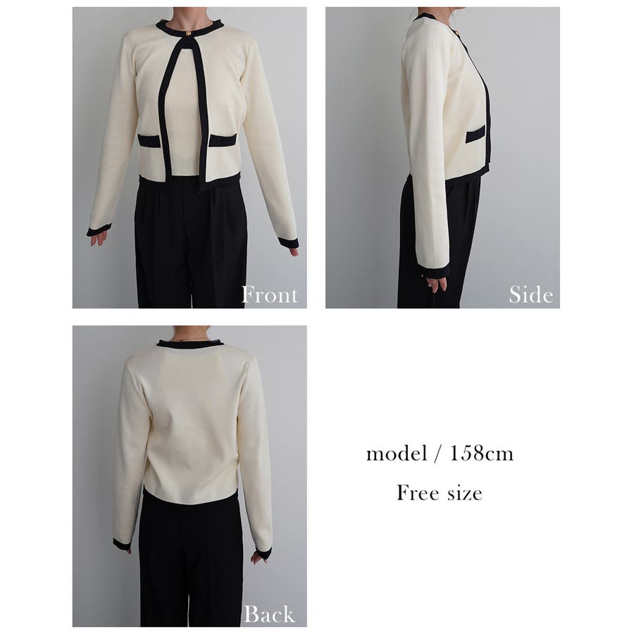 ニットカーディガン+アメスリタンクのアンサンブル。シンプルなデザインながらも配色デザインがアクセントに◎カーディガンは首元のゴールドのボタンさりげない華やかさを添えます・それぞれ単品でも着用できカーディガンは、コンパクトな丈感でブラウスやワンピースの上にも羽織りにも活躍!肩や顔周りを華奢みせしてくれるアメスリタンクは、1枚で着用することでヘルシーな肌見せが叶います◎