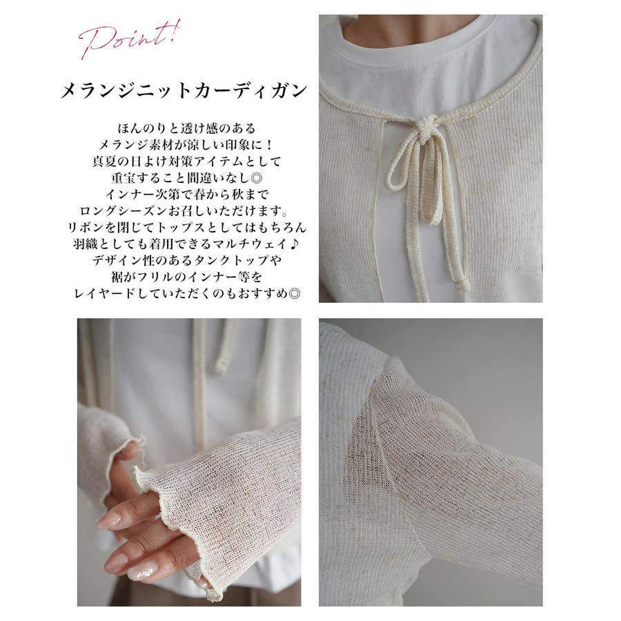 トレンド/スタイルアップ/体型カバー/定番/ベーシック/ナチュラル/カジュアル/大人カジュアル/きれいめカジュアル/シンプル/オフィス/オフィスカジュアル/デイリー/フォーマル/WEB限定/カーディガン/薄手/透け感/シアー/シースルー/メランジ/メランジニット/サマーニット/涼しい/羽織り/リボン/日除け/日焼け対策/ガーリー/バレエコア/2way/メロウ/抜け感