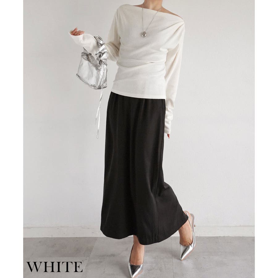 トレンド/スタイルアップ/体型カバー/定番/ベーシック/ナチュラル/カジュアル/大人カジュアル/きれいめカジュアル/シンプル/オフィス/オフィスカジュアル/フォーマル/オケージョン/セレモニー/上品/大人可愛い/韓国/韓国ファッション/卒入式/卒園式/卒業式/入学式/入園式/WEB限定/春/夏/秋/ボートネック/トップス/インナー/カットソー/華奢見え/ドレープ/ドレープデザイン/華奢見え/着痩せ/ロングシーズン/10代/20代/30代/40代/50代/60代/70代