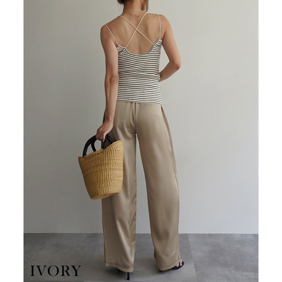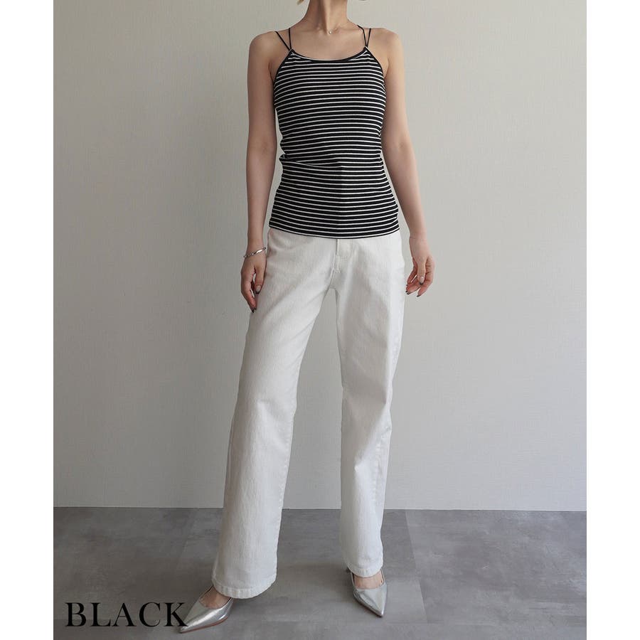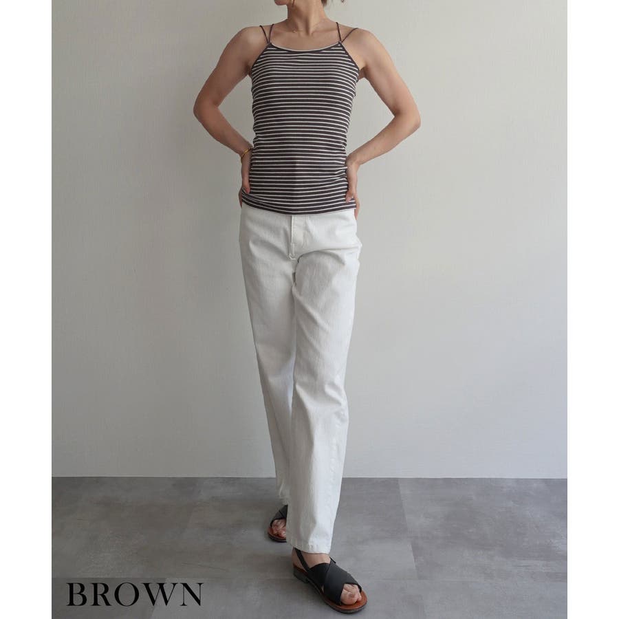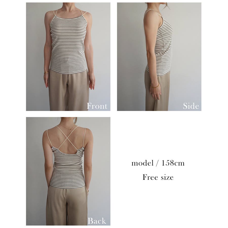 トレンド/スタイルアップ/体型カバー/定番/ベーシック/ナチュラル/カジュアル/大人カジュアル/きれいめカジュアル/シンプル/オフィス/オフィスカジュアル/デイリー/フォーマル/WEB限定/トップス/キャミソール/インナー/キャミ/アンダーウェア/肌着/下着/ボーダー/ストライプ/バッククロス/バックオープン/リブ/背中あき/背中空き/レイヤード/重ね着/カップ付き/パッド付き