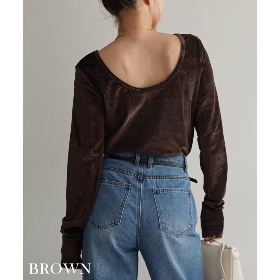 トレンド/スタイルアップ/体型カバー/定番/ベーシック/ナチュラル/カジュアル/大人カジュアル/きれいめカジュアル/シンプル/オフィス/オフィスカジュアル/デイリー/フォーマル/WEB限定/トップス/プルオーバー/長袖/ロングスリーブ/バックオープン/背中魅せ/背中見せ/ヘルシー/肌見せ/肌魅せ/ベロア/ベルベット/レイヤード/重ね着/秋/春/晩夏/初秋