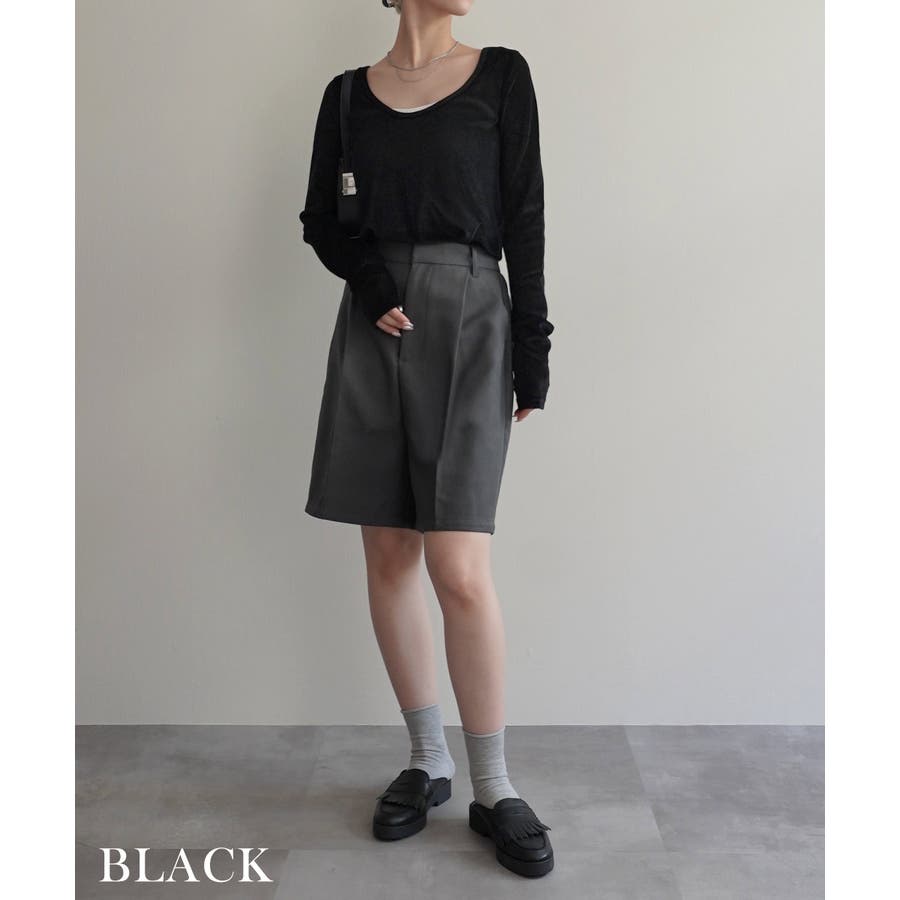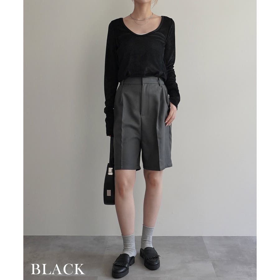 【ブラック】バックオープンベロア調トップスRashik カットソー 大人カジュアル