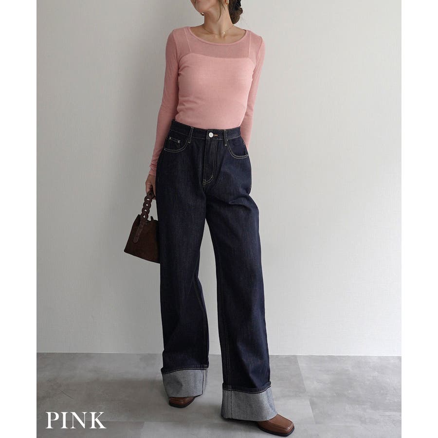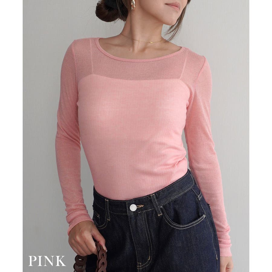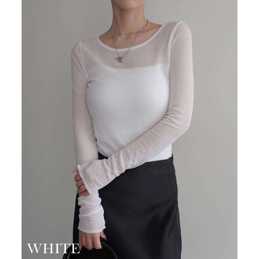 トレンド/スタイルアップ/体型カバー/定番/ベーシック/ナチュラル/カジュアル/大人カジュアル/きれいめカジュアル/シンプル/オフィス/オフィスカジュアル/デイリー/フォーマル/WEB限定/カットソー/トップス/インナー/シアー/シースルー/透け感/ヘルシー/レイヤード/重ね着/丸首/クルーネック/リブ/タイト