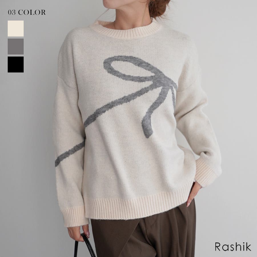 リボンニットRashik ニット 大人カジュアル スタイルアップ レディース