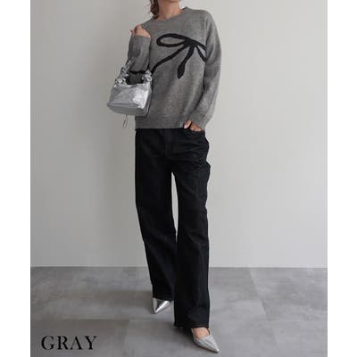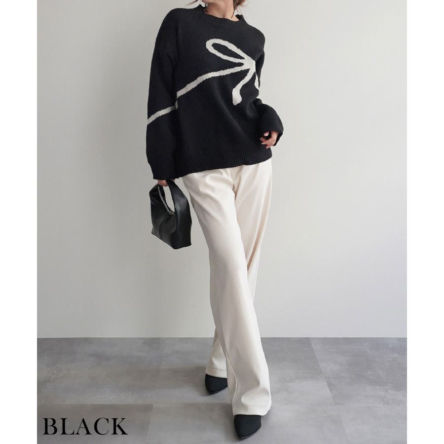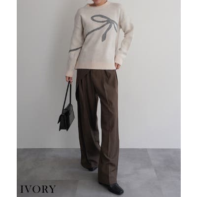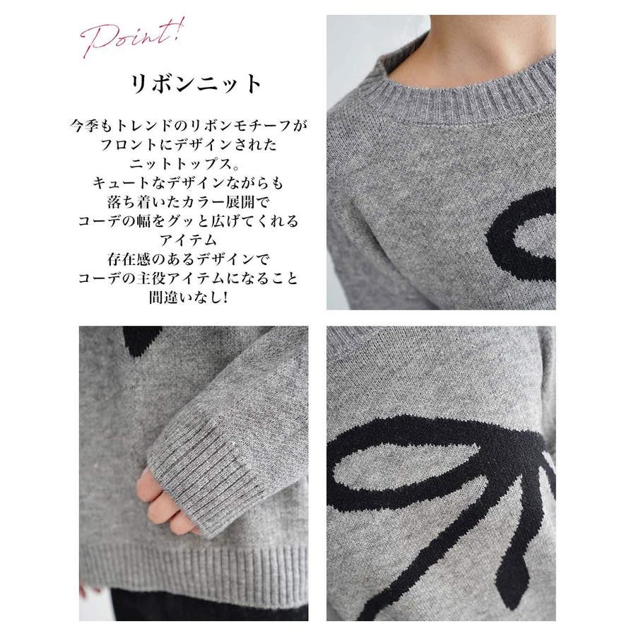 今季もトレンドのリボンモチーフがフロントにデザインされたニットトップス。