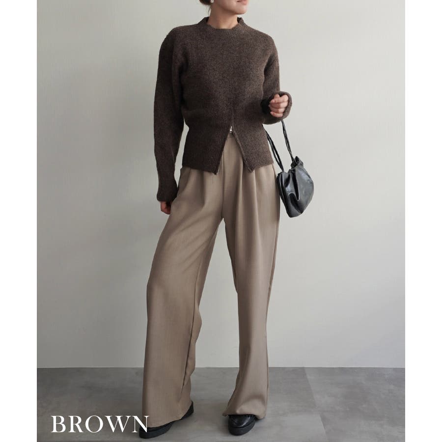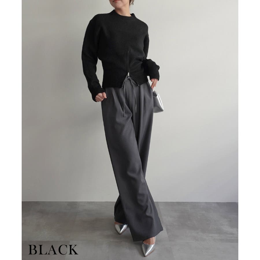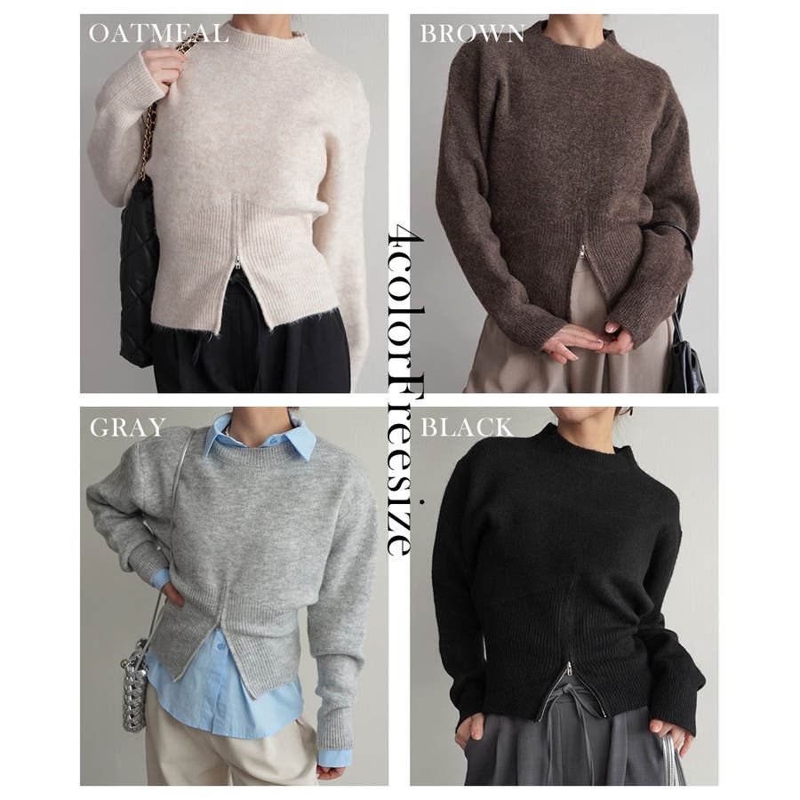 トレンド/スタイルアップ/体型カバー/定番/ベーシック/ナチュラル/カジュアル/大人カジュアル/きれいめカジュアル/シンプル/オフィス/オフィスカジュアル/デイリー/オケージョン/フォーマル/WEB限定/ニット/メランジニット/ジップ/ウエストジップ/ミックスニット/リブニット/リブ/ドルマンスリーブ/華奢見え/韓国/レイヤード/重ね着