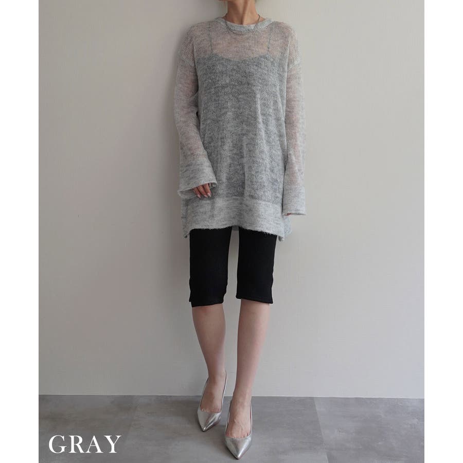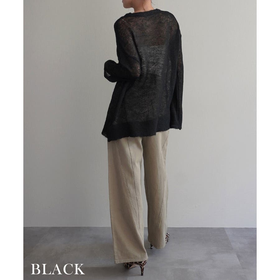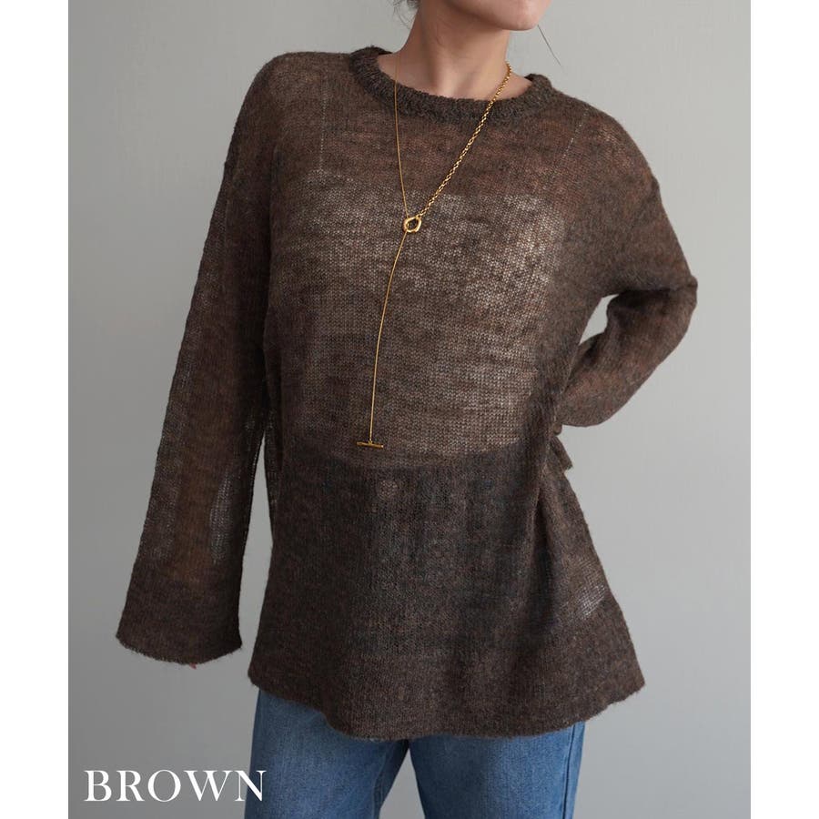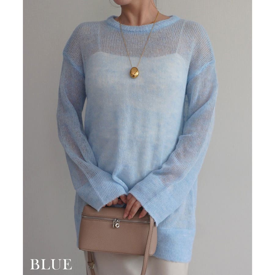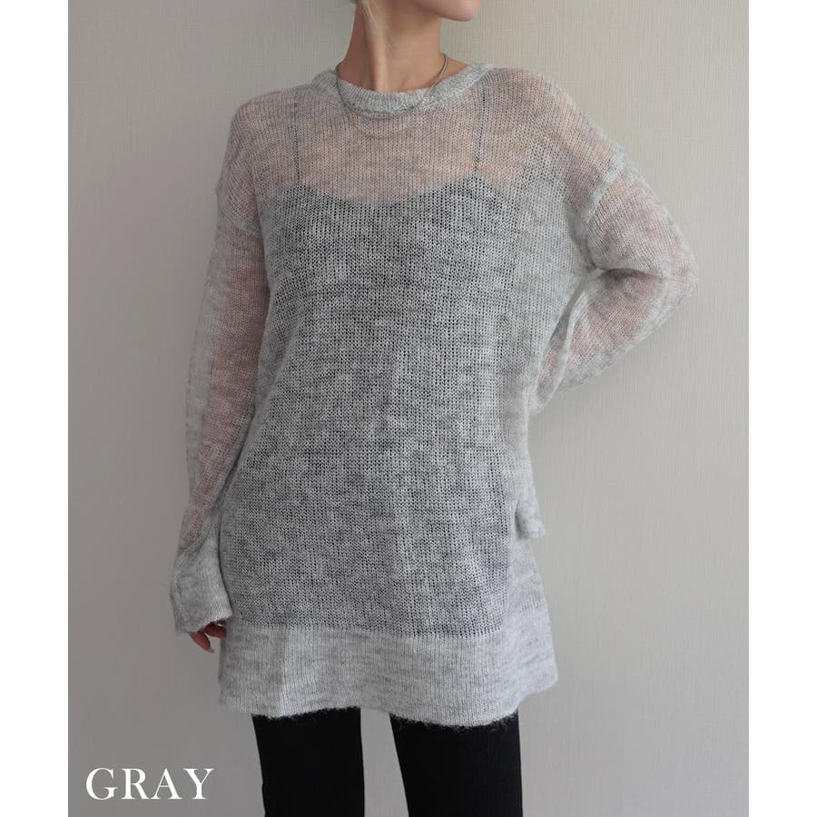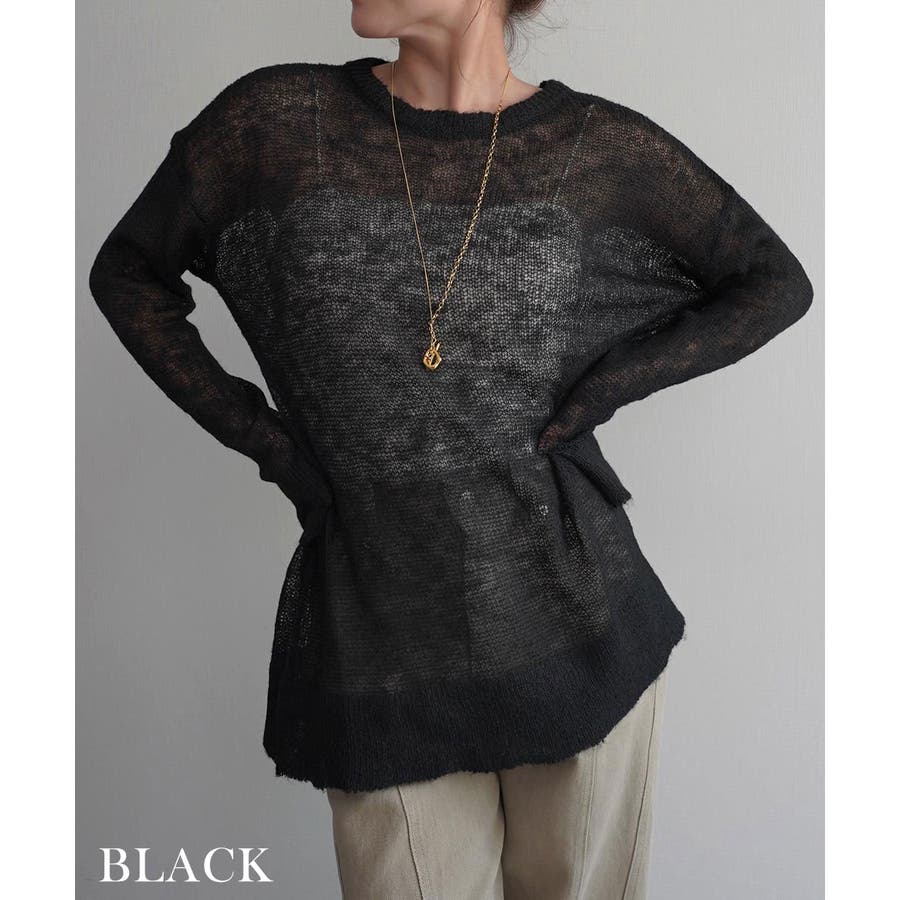 トレンド/スタイルアップ/体型カバー/定番/ベーシック/ナチュラル/カジュアル/大人カジュアル/きれいめカジュアル/シンプル/オフィス/オフィスカジュアル/デイリー/フォーマル/WEB限定/トップス/ニット/モヘア/モヘヤ/シアー/シースルー/かぎ編み/かぎ針/透け/ローゲージ/クルーネック/ビッグカフス/ルーズ/ビッグサイズ/ミドル/ロング/レイヤード/大きめ/ゆったり/季節の変わり目/春/秋/晩夏/初秋