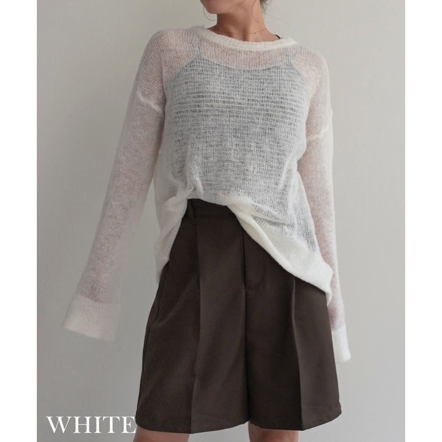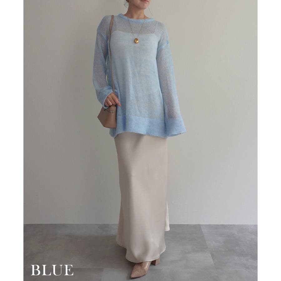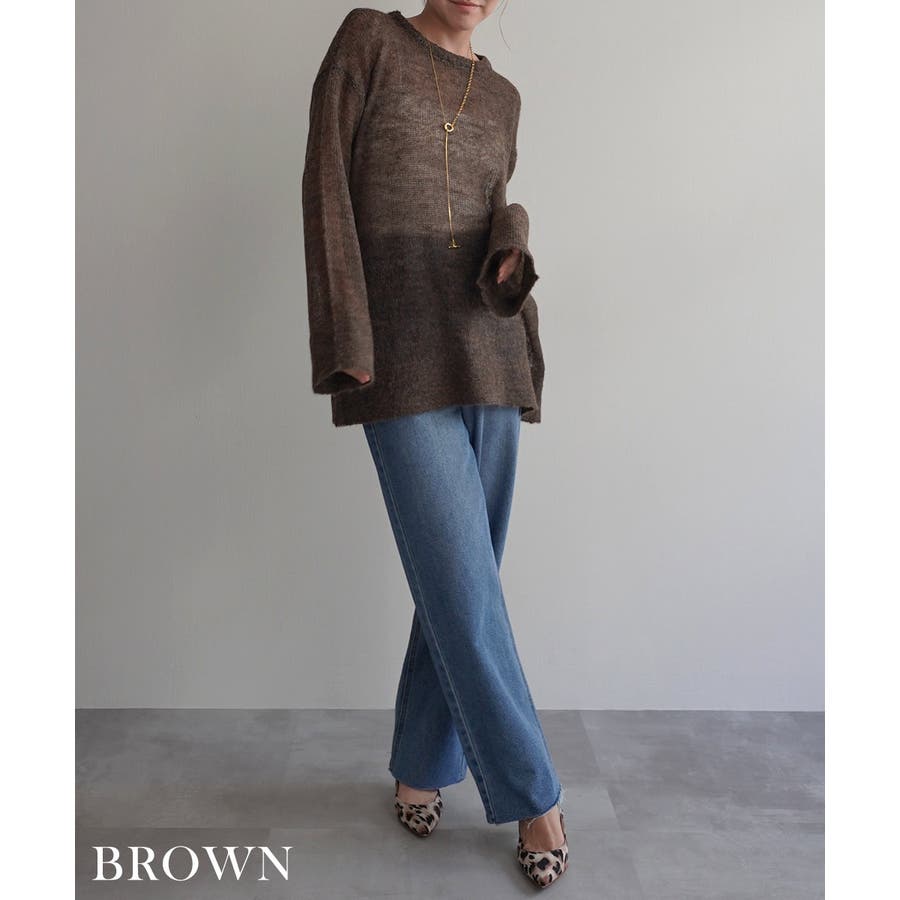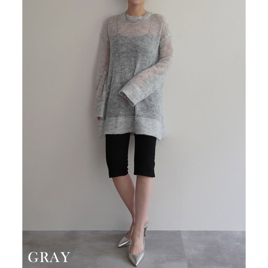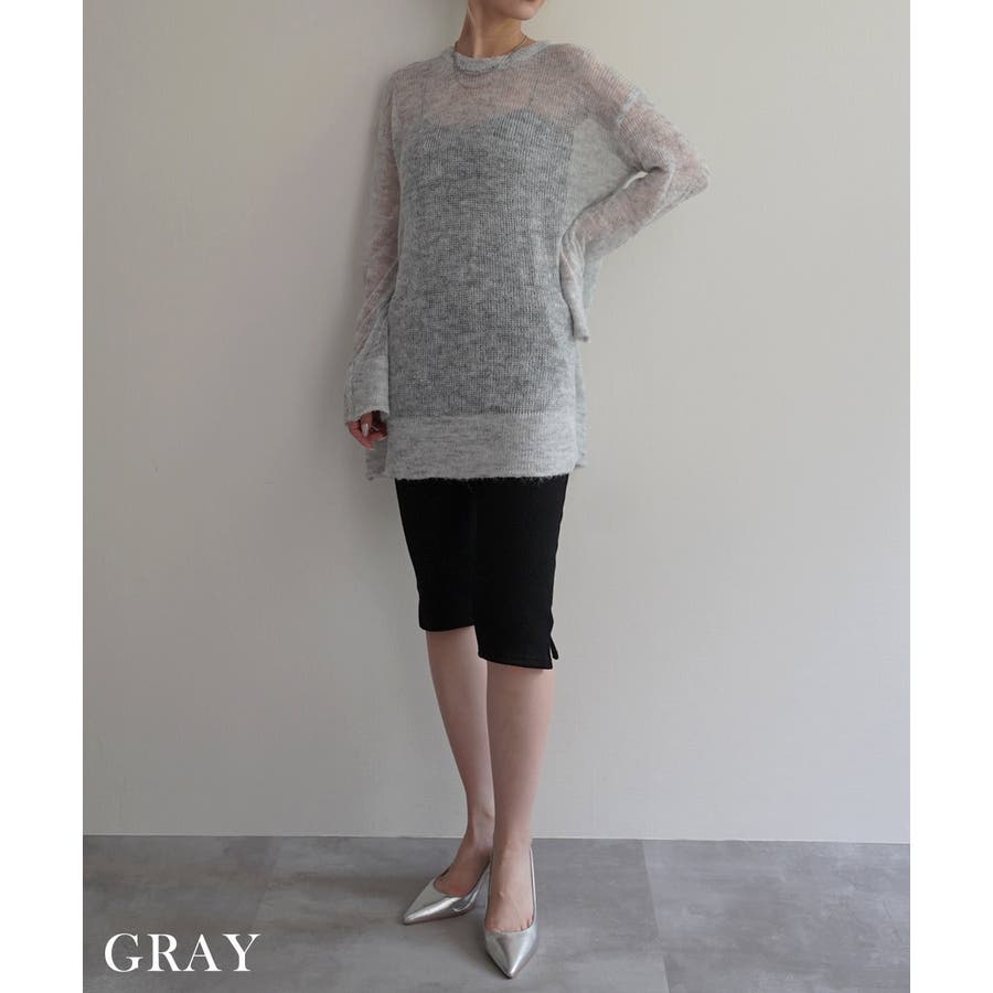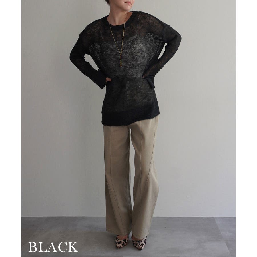トレンド/スタイルアップ/体型カバー/定番/ベーシック/ナチュラル/カジュアル/大人カジュアル/きれいめカジュアル/シンプル/オフィス/オフィスカジュアル/デイリー/フォーマル/WEB限定/トップス/ニット/モヘア/モヘヤ/シアー/シースルー/かぎ編み/かぎ針/透け/ローゲージ/クルーネック/ビッグカフス/ルーズ/ビッグサイズ/ミドル/ロング/レイヤード/大きめ/ゆったり/季節の変わり目/春/秋/晩夏/初秋