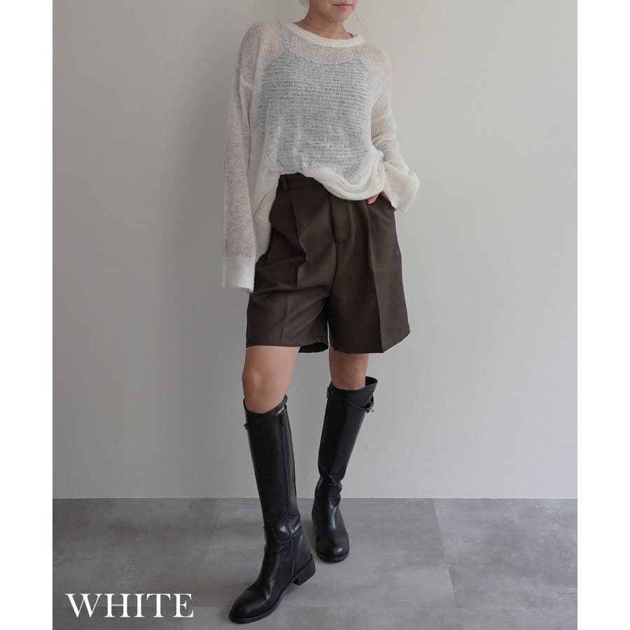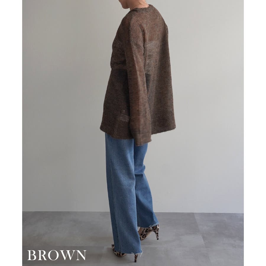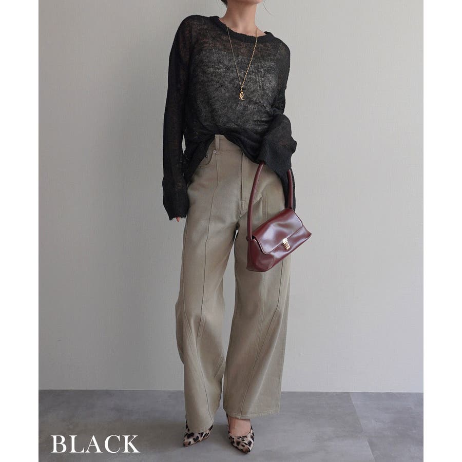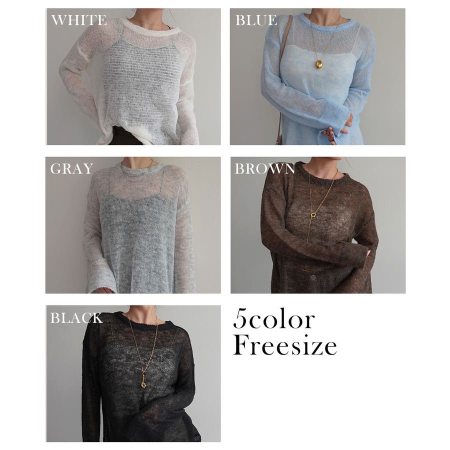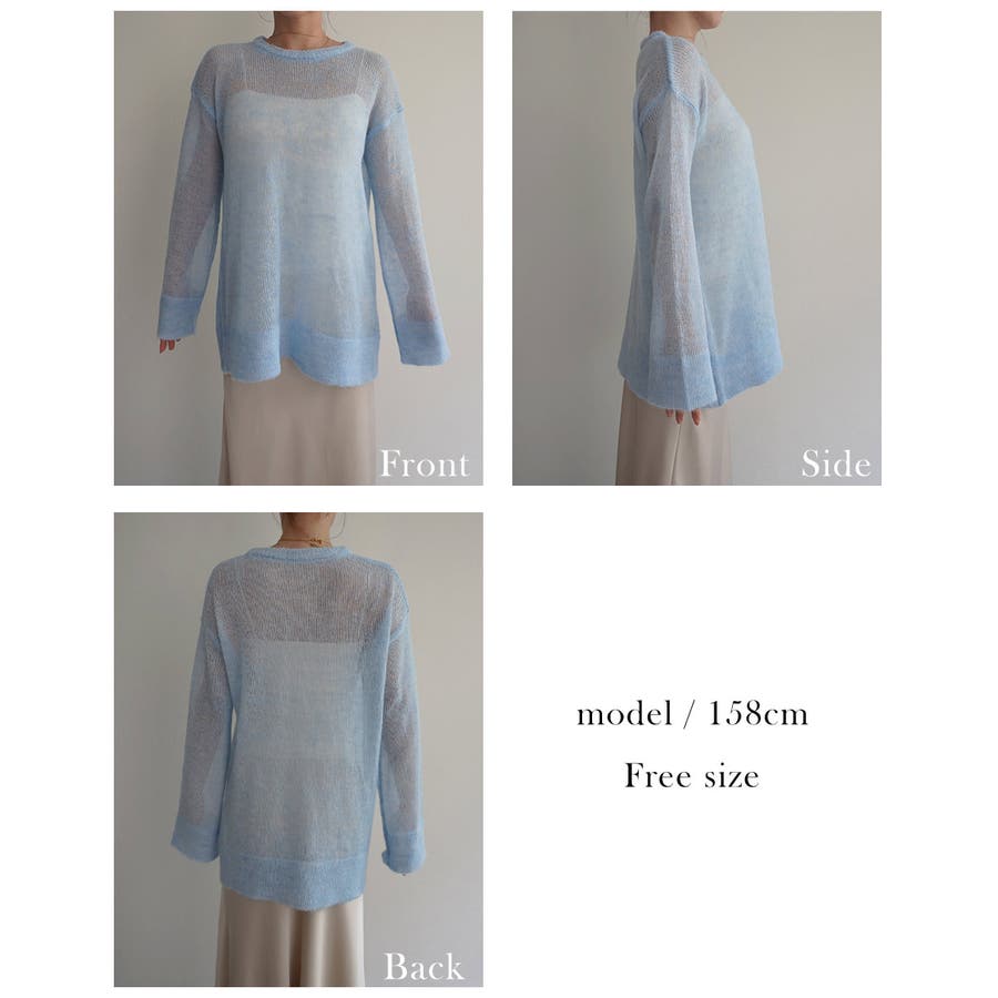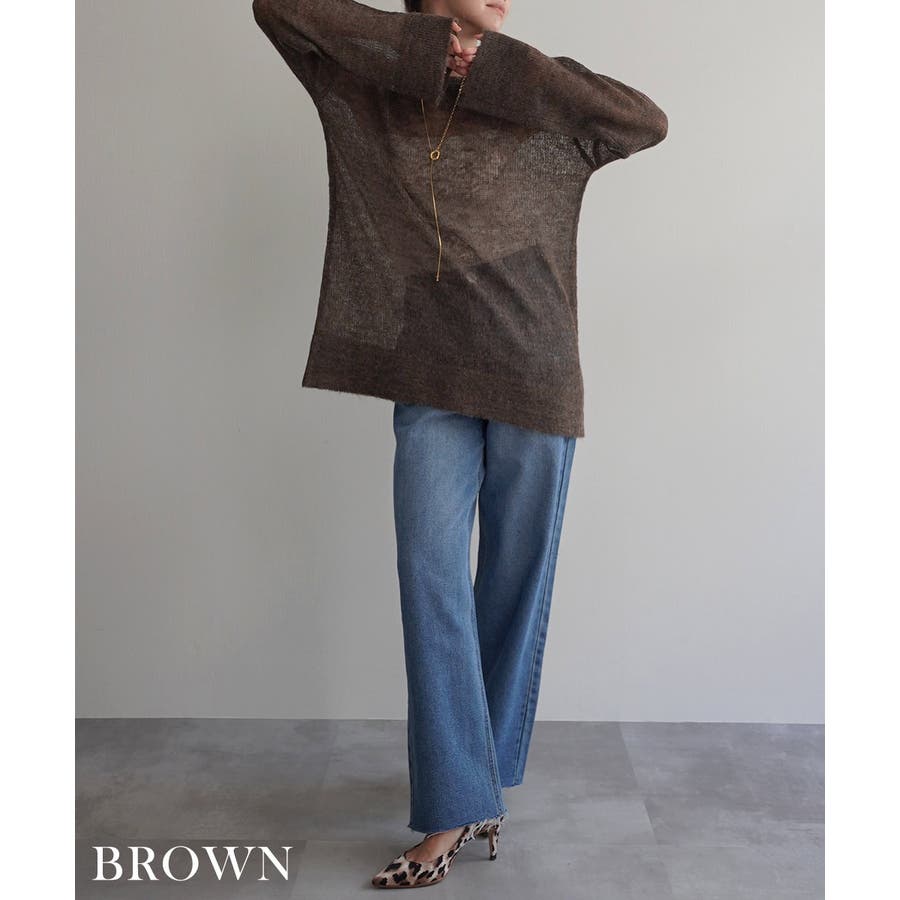 トレンド/スタイルアップ/体型カバー/定番/ベーシック/ナチュラル/カジュアル/大人カジュアル/きれいめカジュアル/シンプル/オフィス/オフィスカジュアル/デイリー/フォーマル/WEB限定/トップス/ニット/モヘア/モヘヤ/シアー/シースルー/かぎ編み/かぎ針/透け/ローゲージ/クルーネック/ビッグカフス/ルーズ/ビッグサイズ/ミドル/ロング/レイヤード/大きめ/ゆったり/季節の変わり目/春/秋/晩夏/初秋
