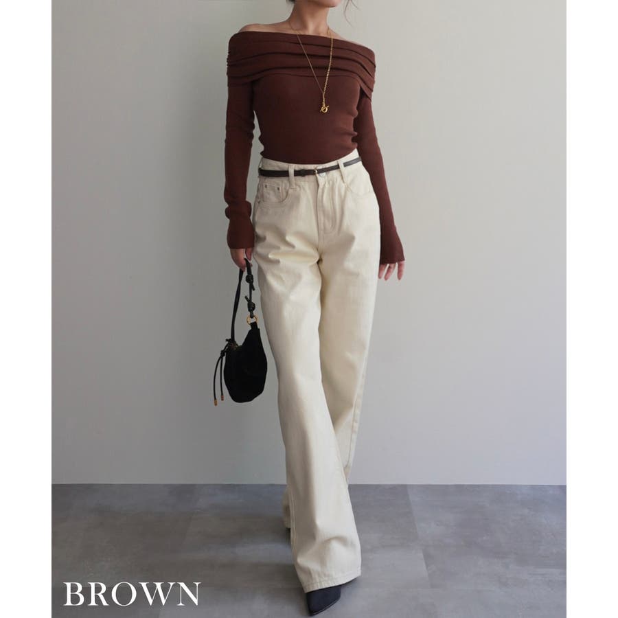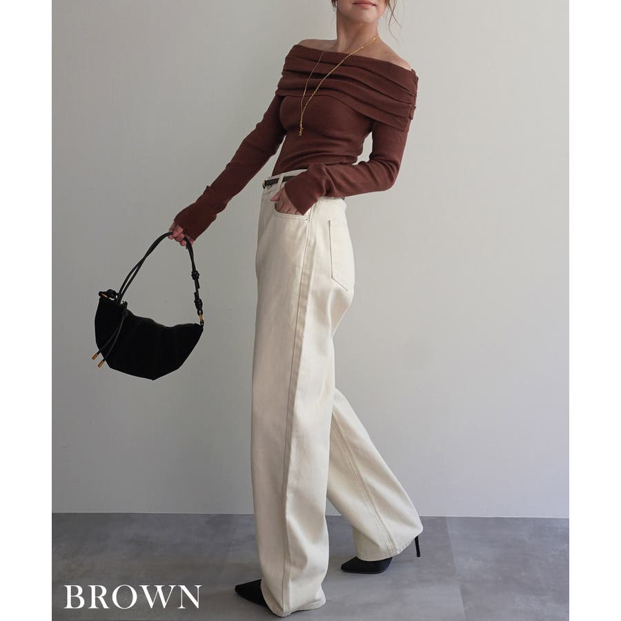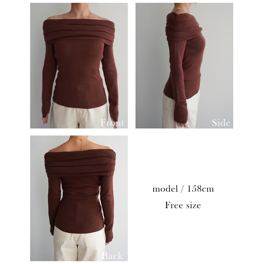 オフショルダーギャザーニット Rashik ニット