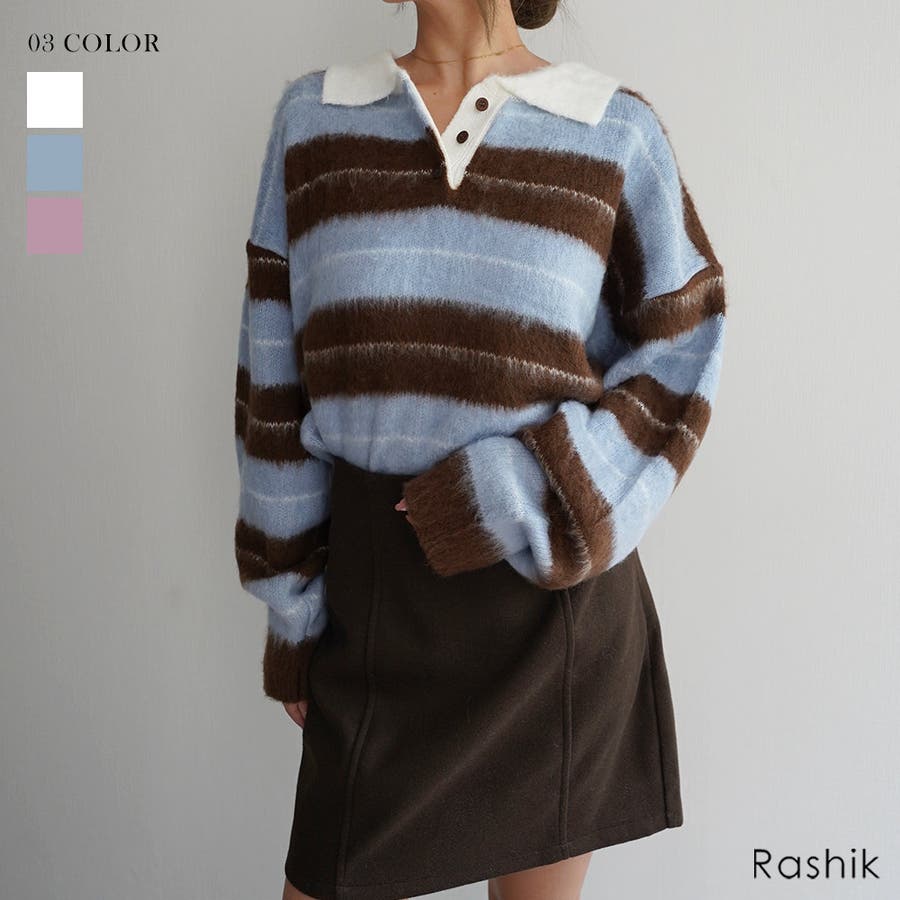 ラガーボーダーシャギーニットRashik ニット 大人カジュアル