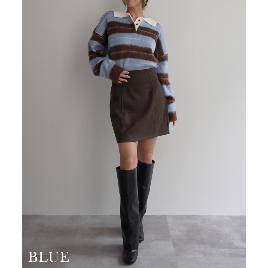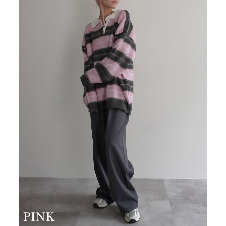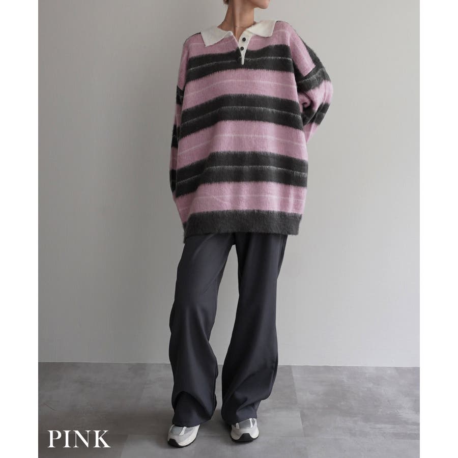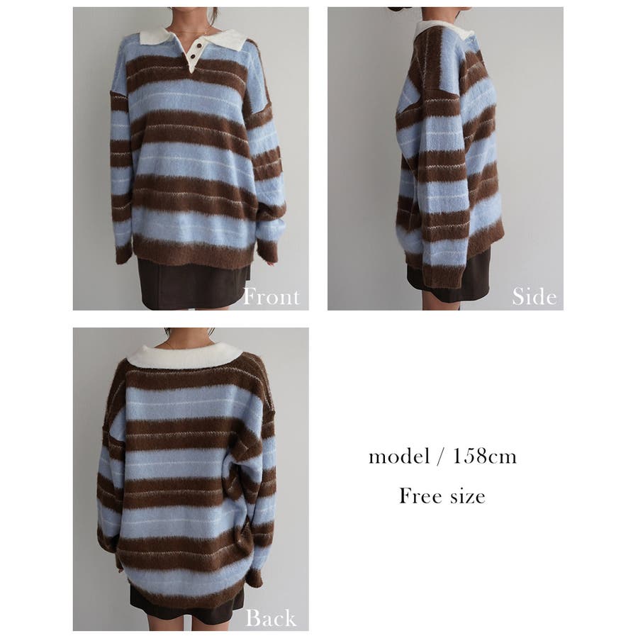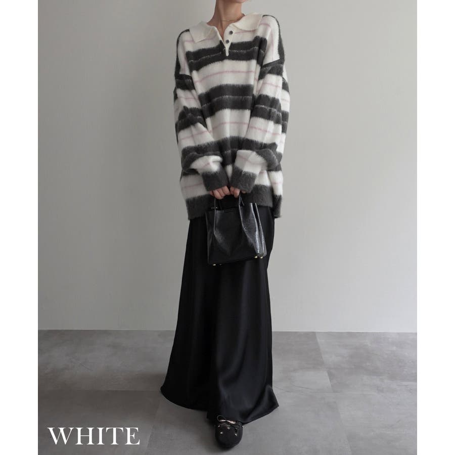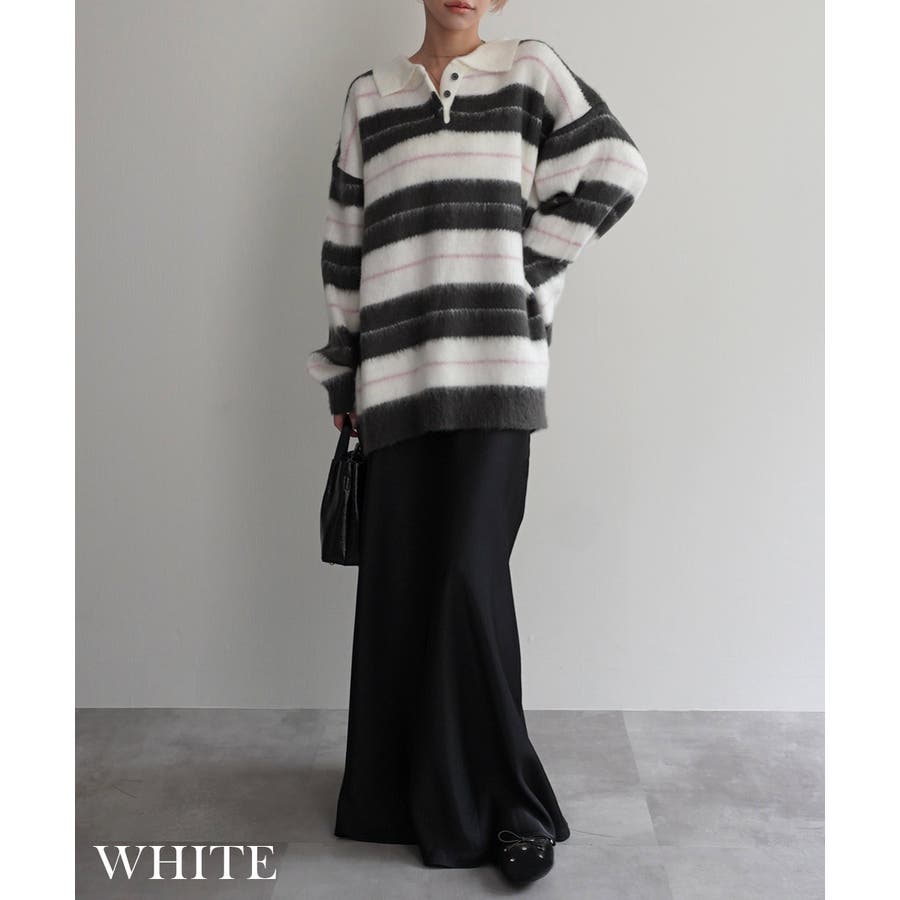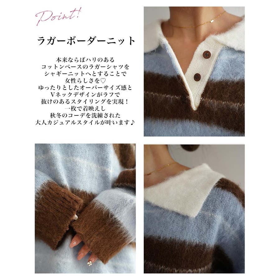 トレンド/スタイルアップ/体型カバー/定番/ベーシック/ナチュラル/カジュアル/大人カジュアル/きれいめカジュアル/シンプル/オフィス/オフィスカジュアル/デイリー/フォーマル/WEB限定/ニット/シャギーニット/ラガーボーダー/ボーダー/ポロニット/
