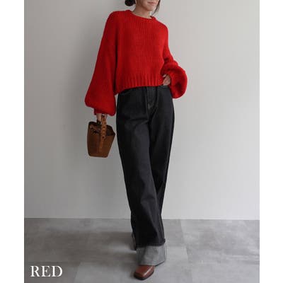 トレンド/スタイルアップ/体型カバー/定番/ベーシック/ナチュラル/カジュアル/大人カジュアル/きれいめカジュアル/シンプル/オフィス/オフィスカジュアル/デイリー/フォーマル/WEB限定/ニット/バルーン/バルーンスリーブ/バルーン袖/ショート/クロップド/ボリューム/ボリュームニット/ローゲージ