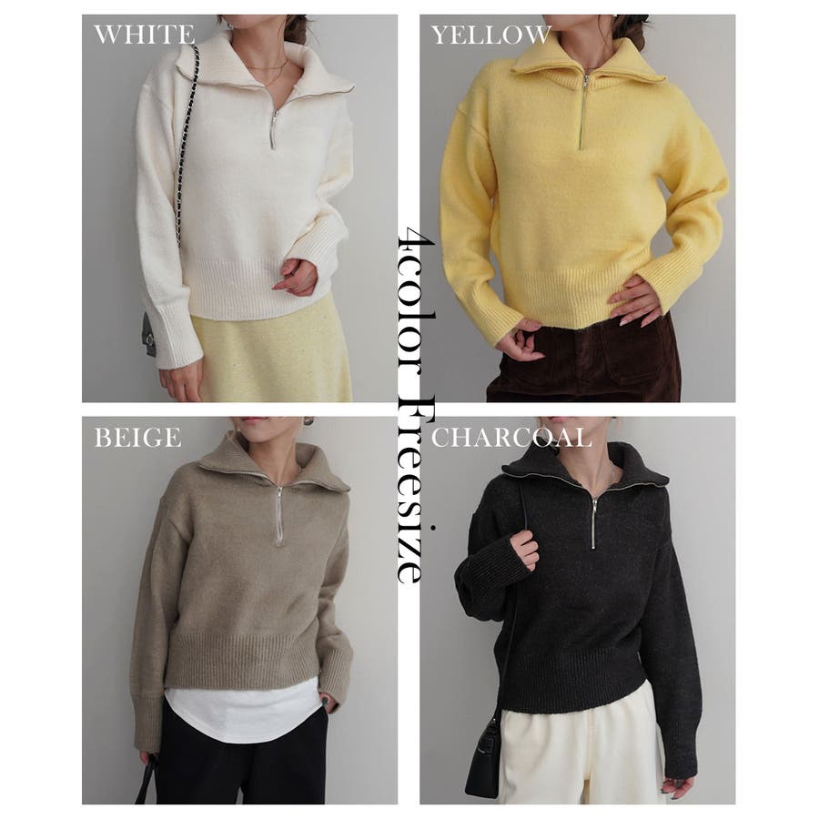 トレンド/スタイルアップ/体型カバー/定番/ベーシック/ナチュラル/カジュアル/大人カジュアル/きれいめカジュアル/シンプル/オフィス/オフィスカジュアル/デイリー/フォーマル/WEB限定/ニット/ハーフジップ/トップス/プルオーバー/バターイエロー/ノームコア/ワンマイル/メンズライク/リブ/ハイネック/ボトルネック/タートル/防寒