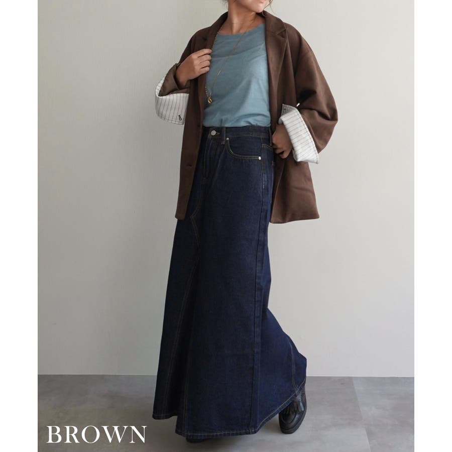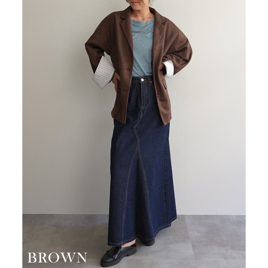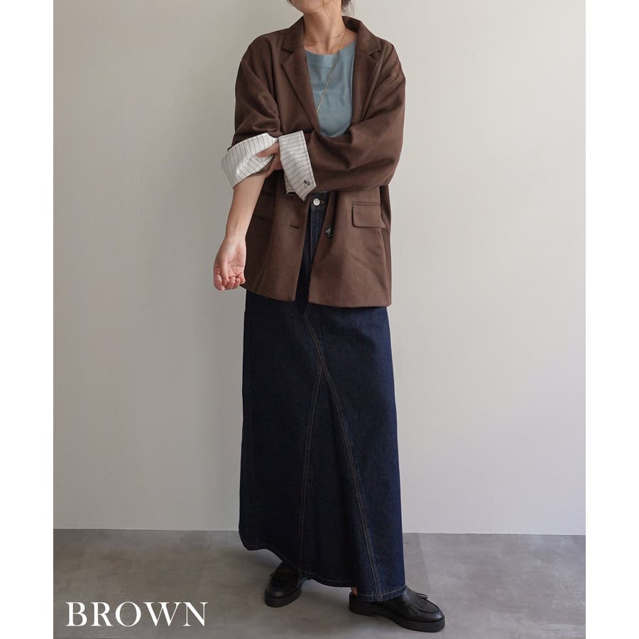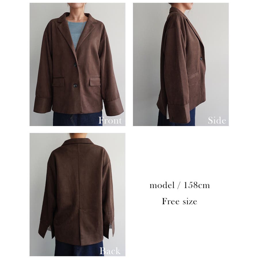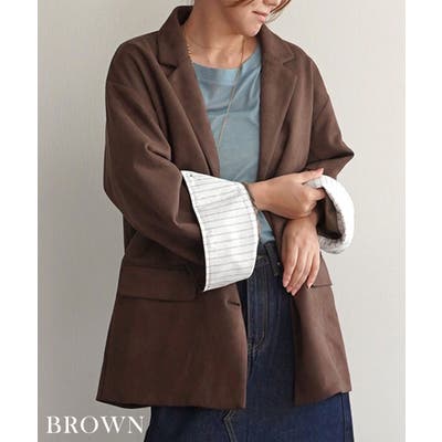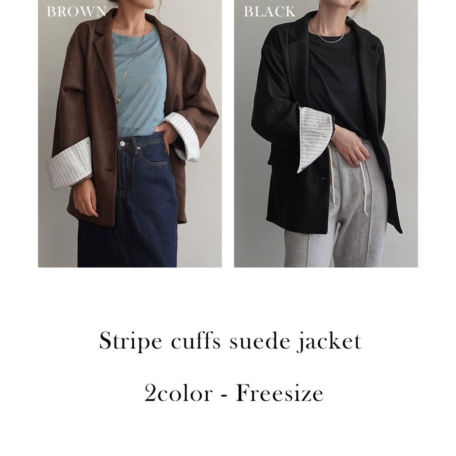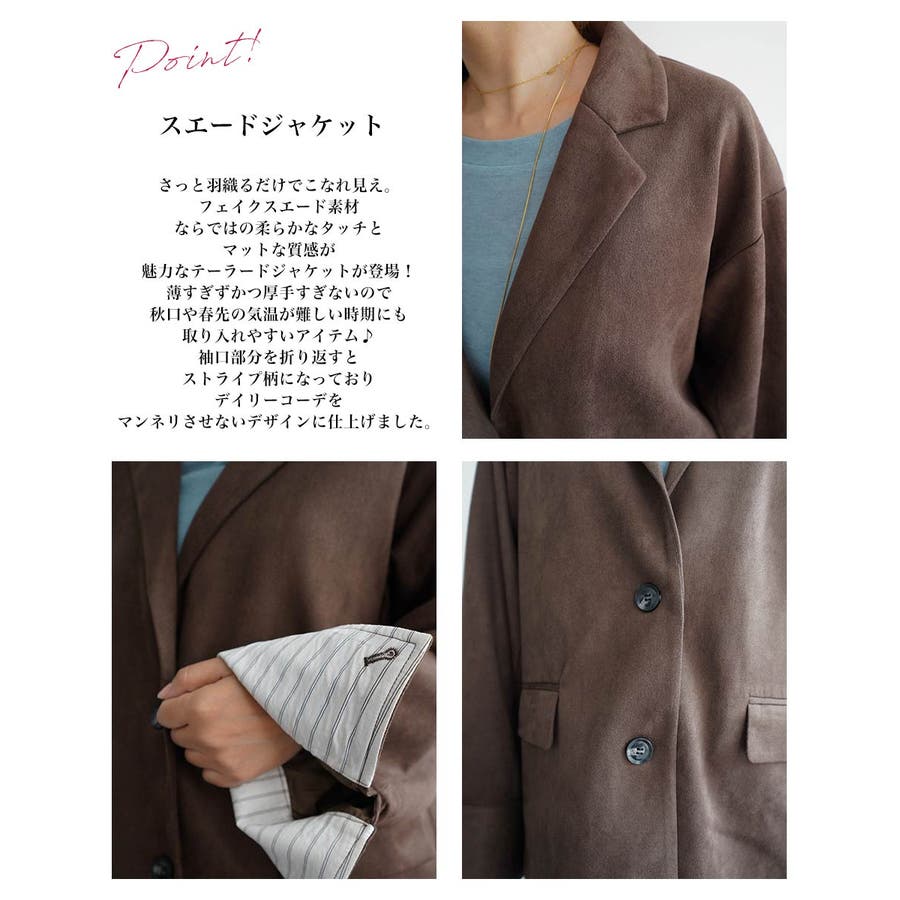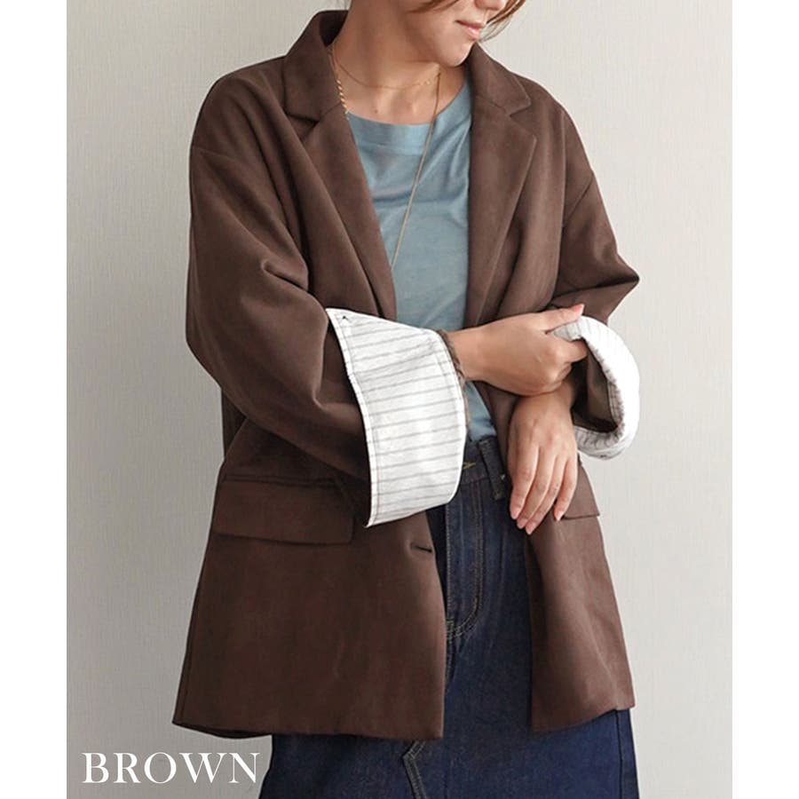 トレンド/スタイルアップ/体型カバー/定番/ベーシック/ナチュラル/カジュアル/大人カジュアル/きれいめカジュアル/シンプル/オフィス/オフィスカジュアル/デイリー/フォーマル/WEB限定/アウター/ジャケット/テーラード/ストライプ/ビッグカフス/スエード/フェイクスエード/シック/クラシカル/プレッピー/プレッピースタイル/マット/晩夏/初秋/梅春