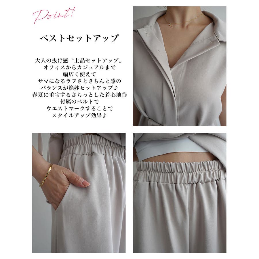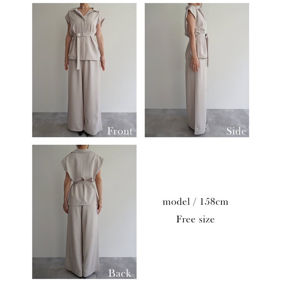 トレンド/スタイルアップ/体型カバー/定番/ベーシック/ナチュラル/カジュアル/大人カジュアル/きれいめカジュアル/シンプル/オフィス/オフィスカジュアル/デイリー/フォーマル/WEB限定/セットアップ/ベスト/スラックス/ウエストゴム/ベルト/ベルト付き/フォーマル/オケージョン/セレモニー/ママ/ママコーデ/上品/半袖/フレンチスリーブ