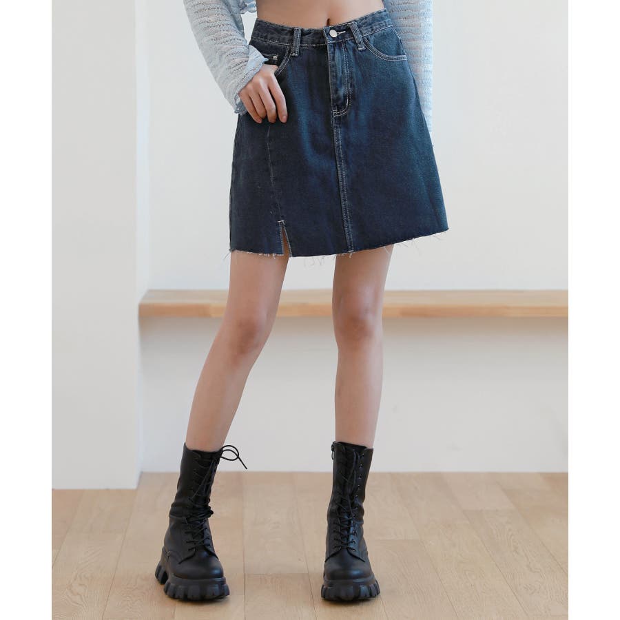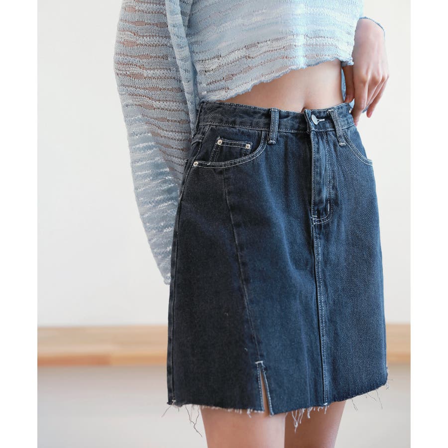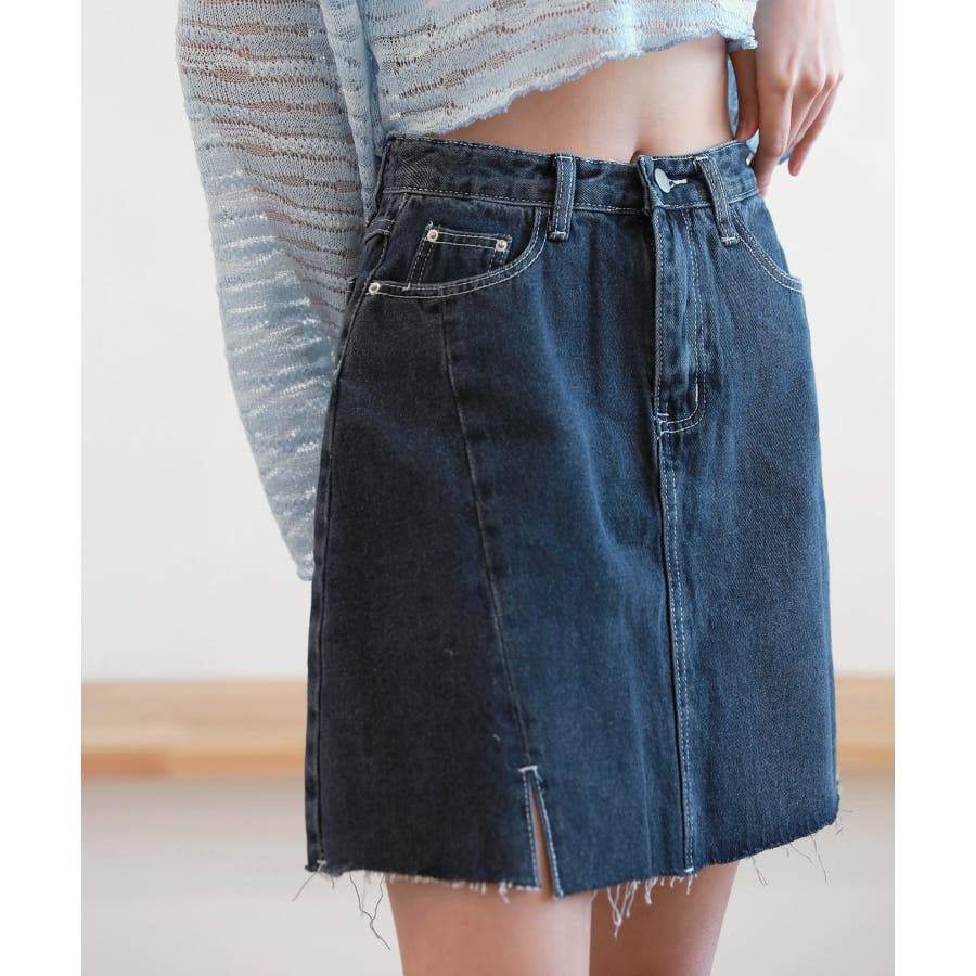 カットスリットポイントデニムスカート
