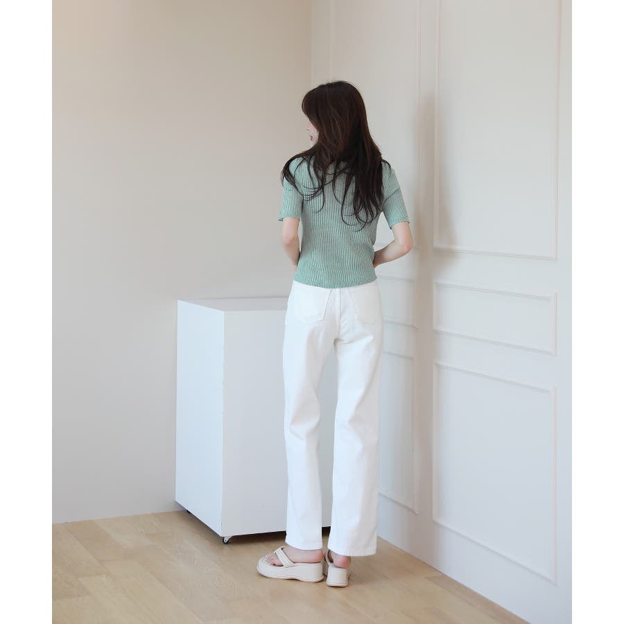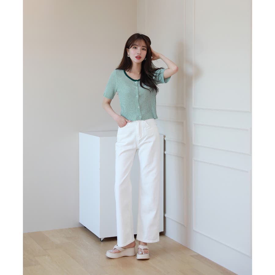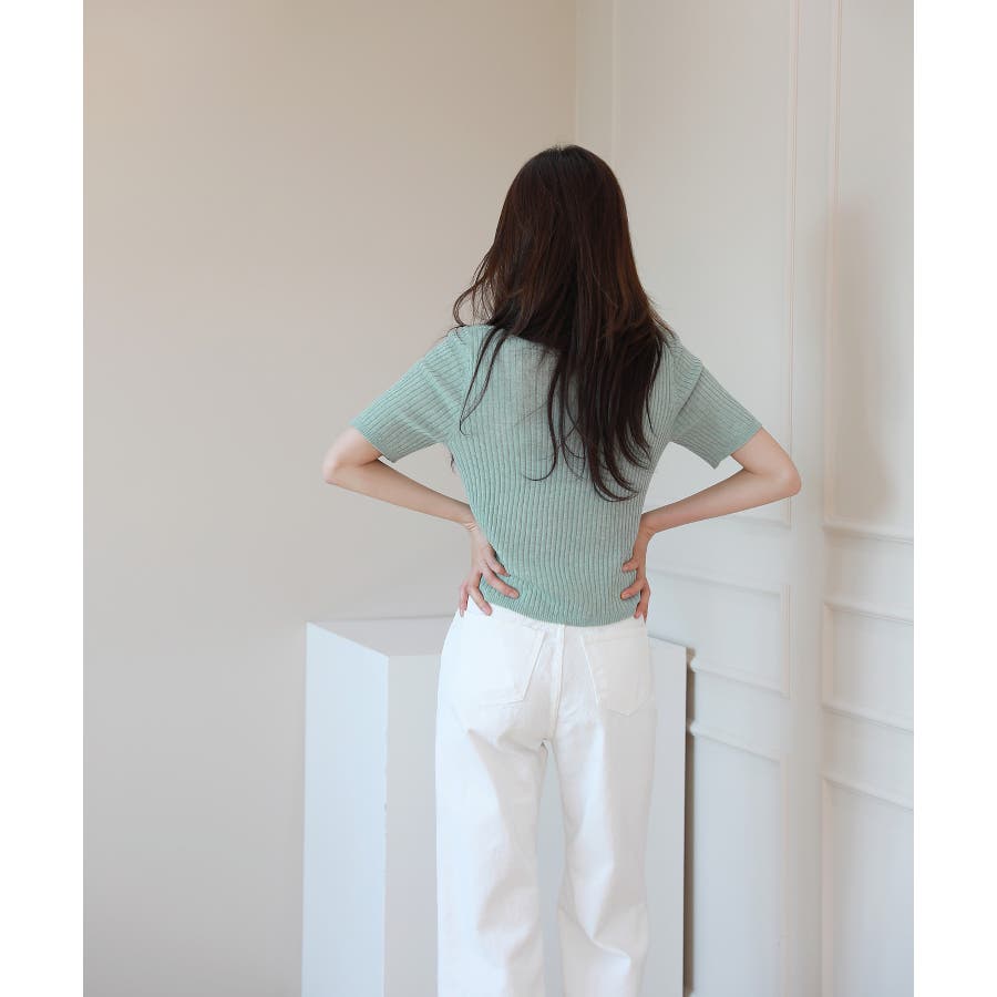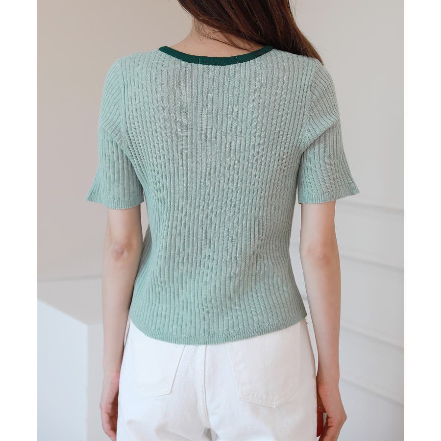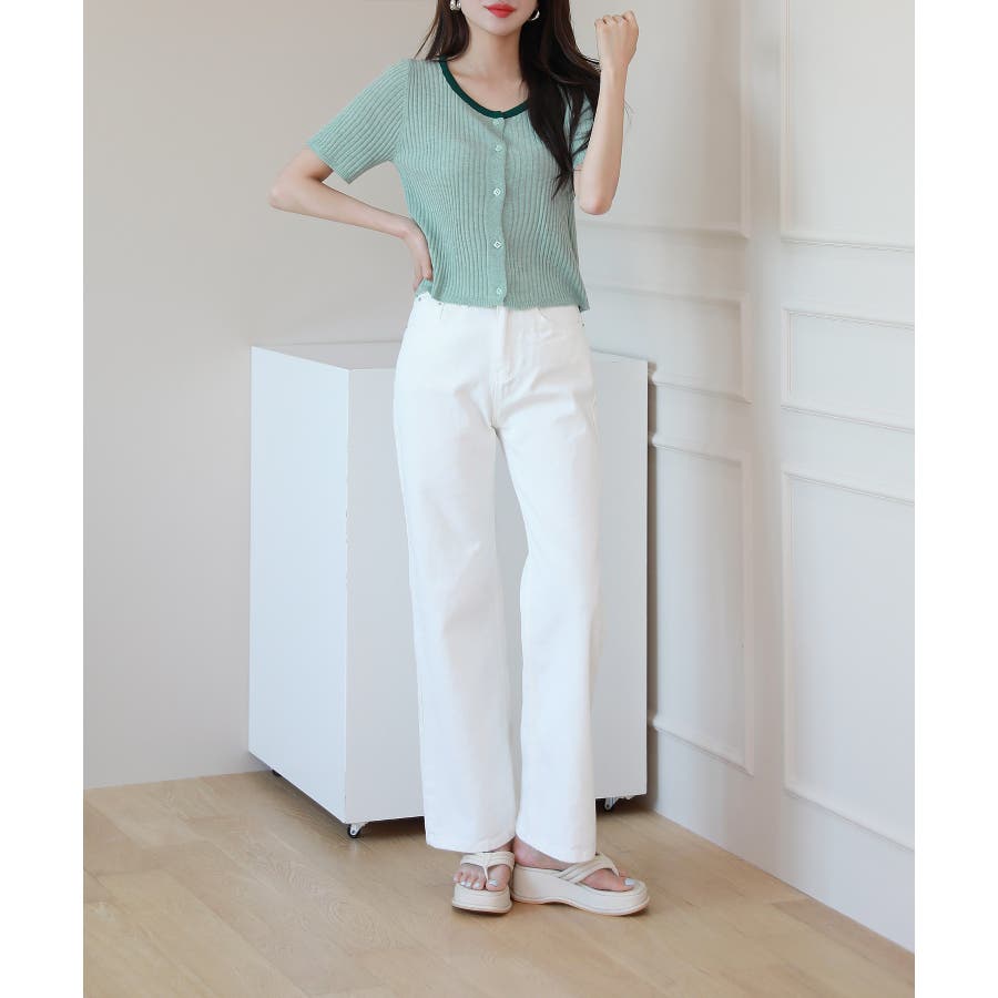 ベーシックなデザインでトレンディなカラーの半袖リブカーディガンです。