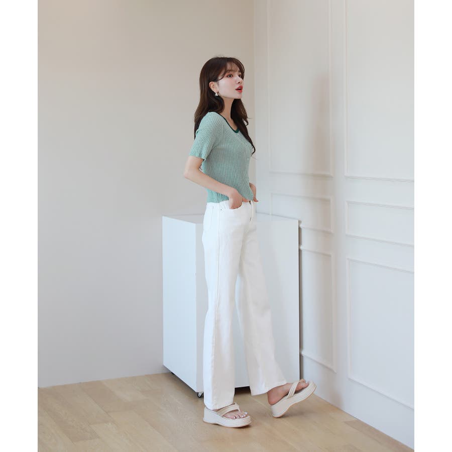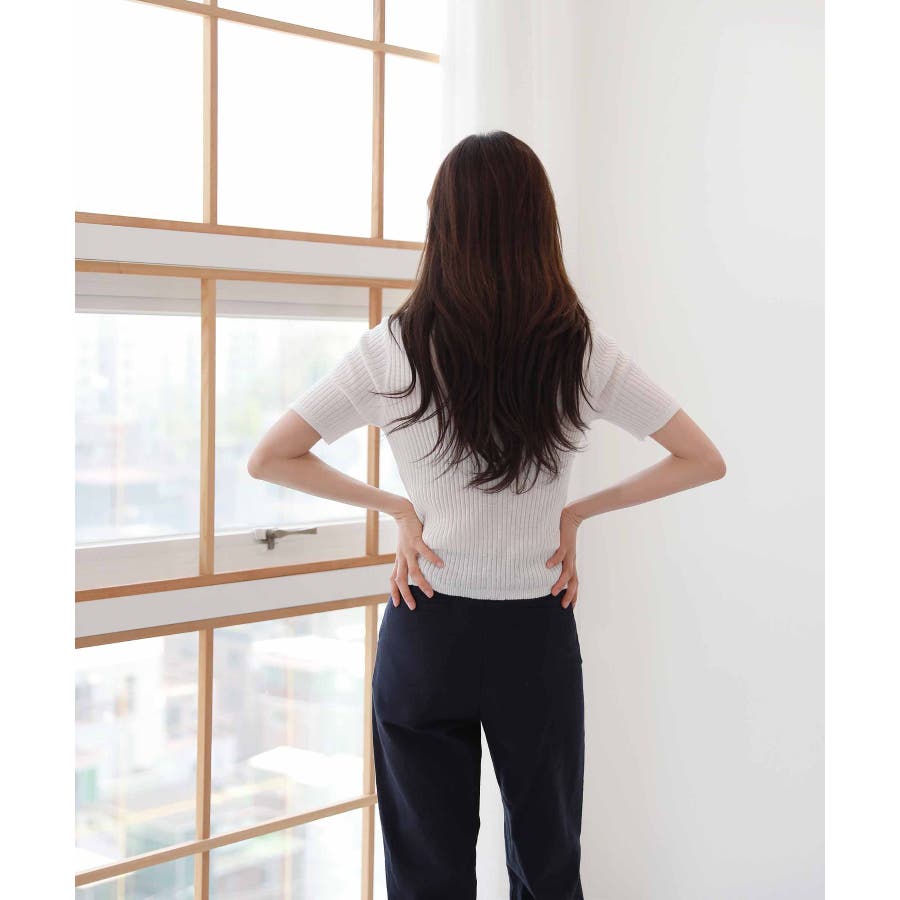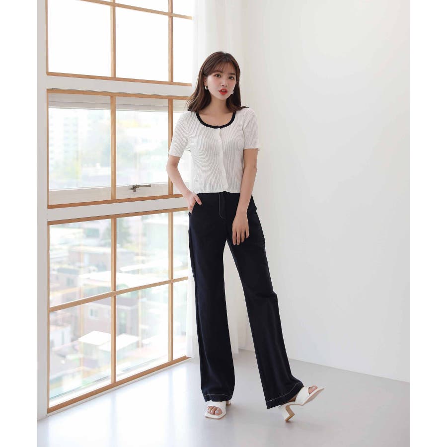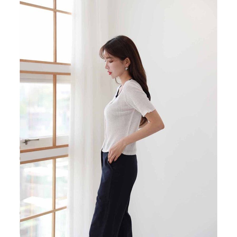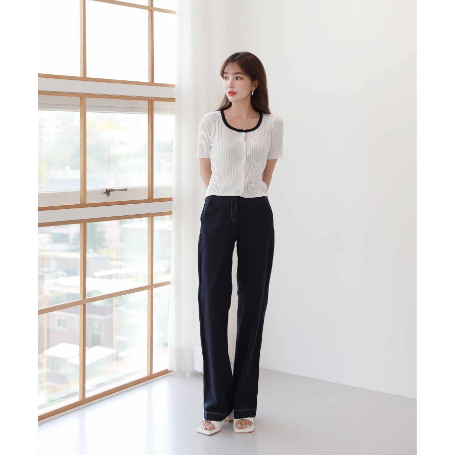 ベーシックなデザインでトレンディなカラーの半袖リブカーディガンです。