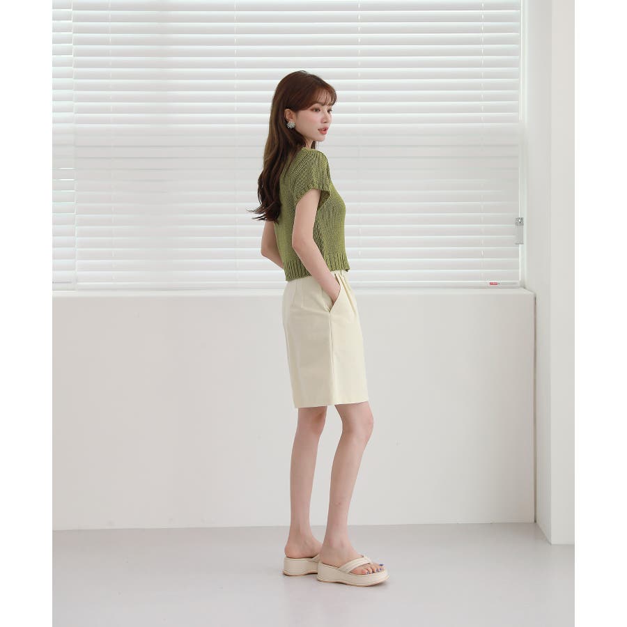 リネン混紡の生地なので夏にも涼しく着用しやすいしデニム、コットン、リネン パンツともナチュラルなムードで演出しやすくハーフパンツともよく似合います。