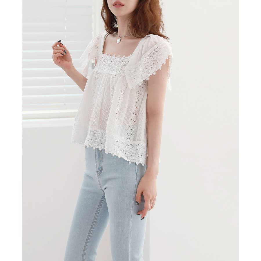 ラブリーさが可能な スクエアネック パンチング ブラウスをご紹介します。