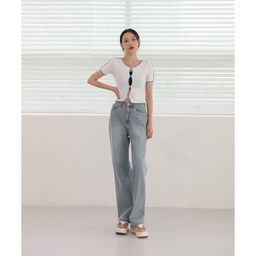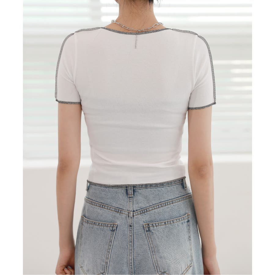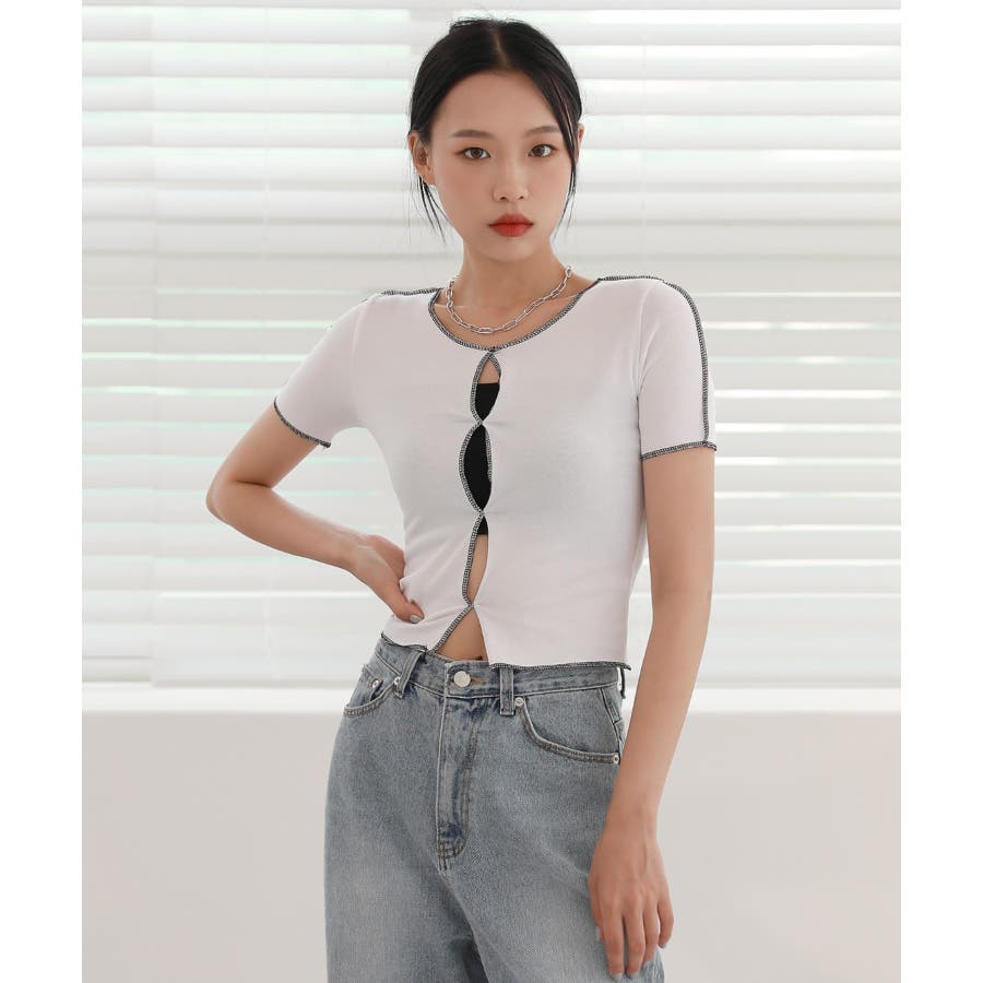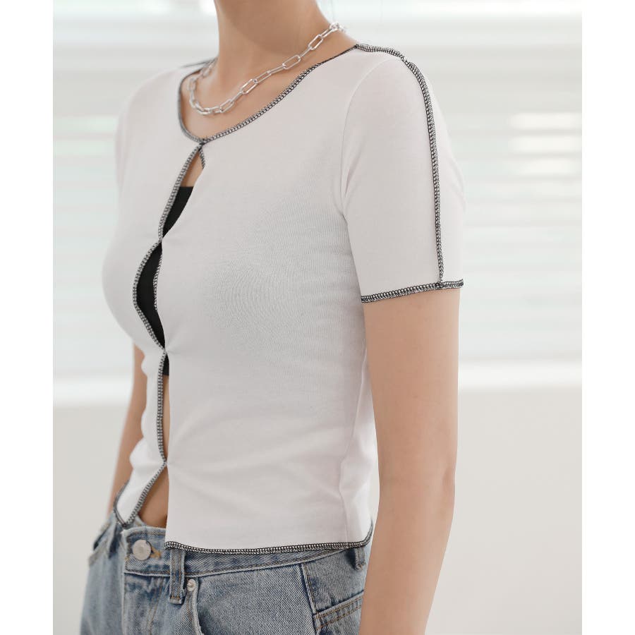 フロントのホールディテールと配色が入ったTシャツを紹介します。