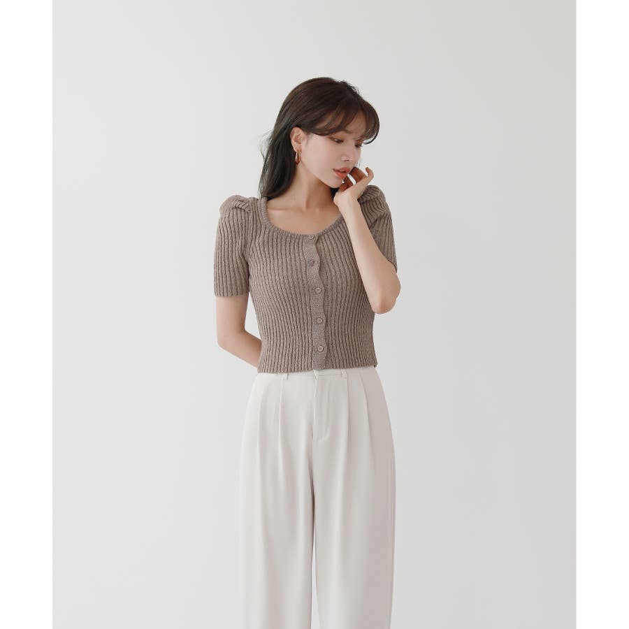 ベーシックなデザインからリブニットがポイントになってくれるカーディガンです。