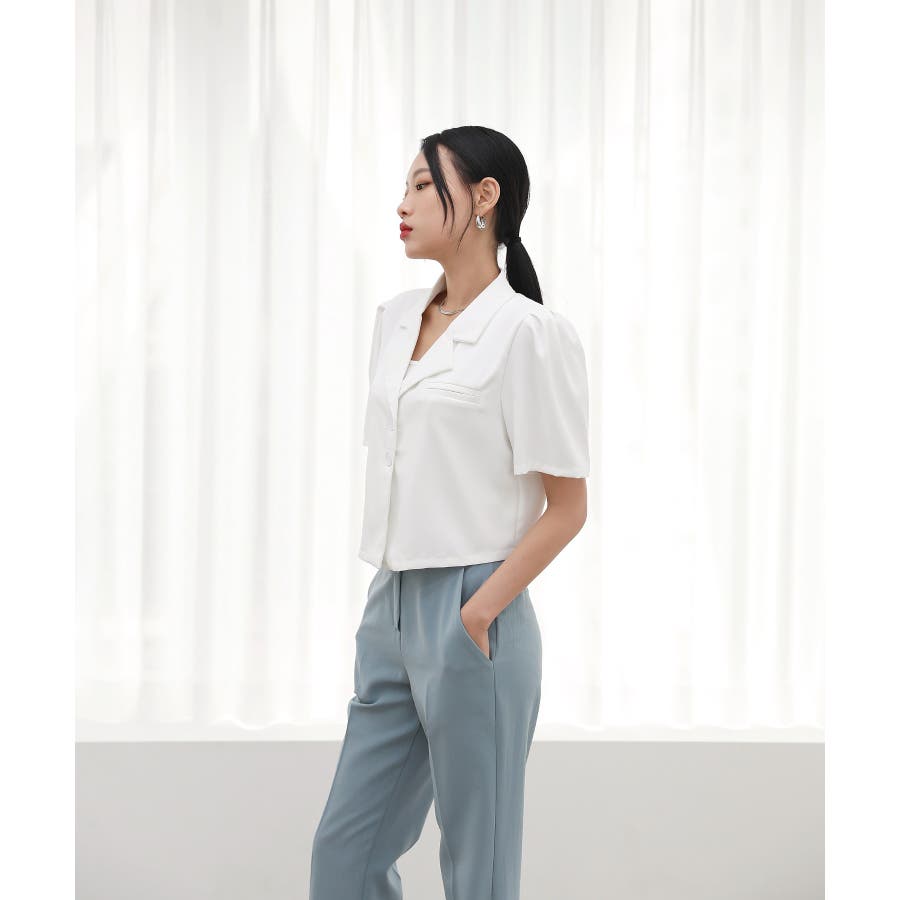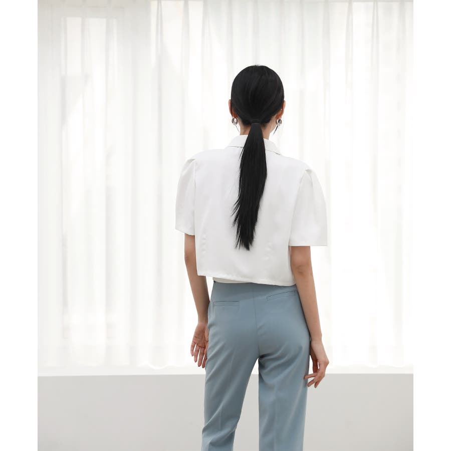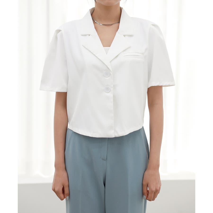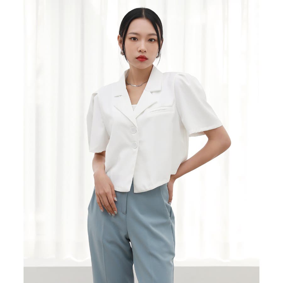 クロップな丈感のカラーパフ袖で可愛くデイリーなクロップジャケットを紹介します