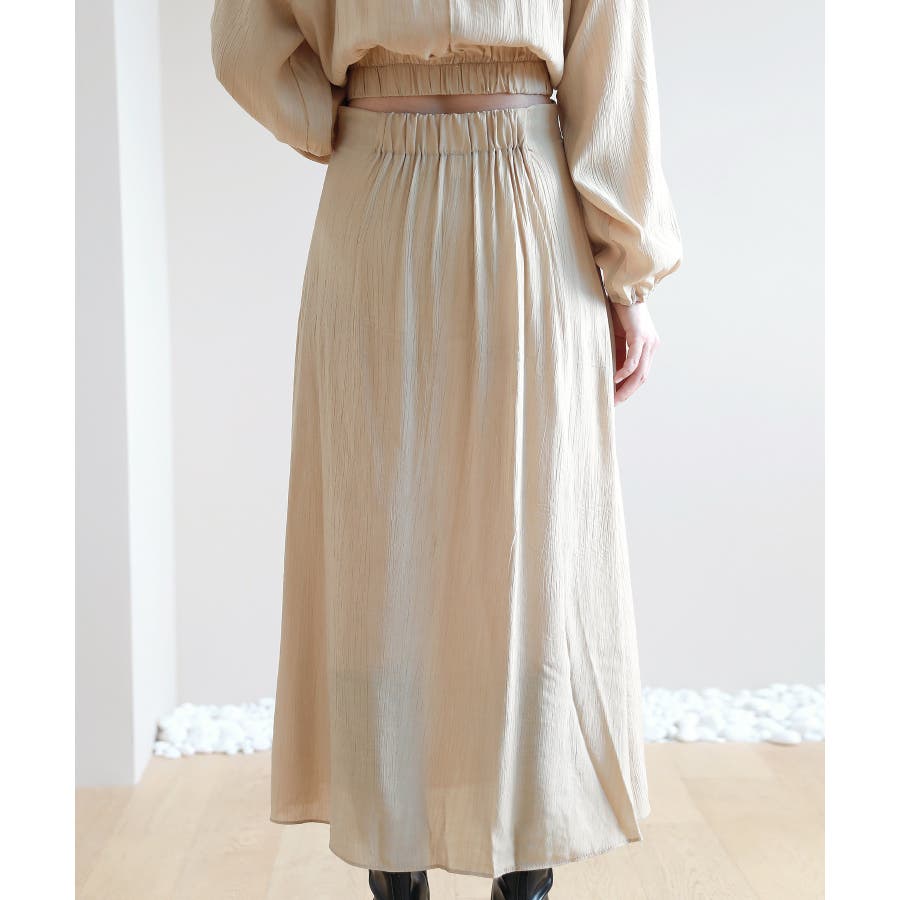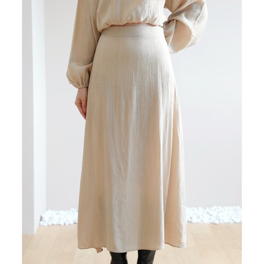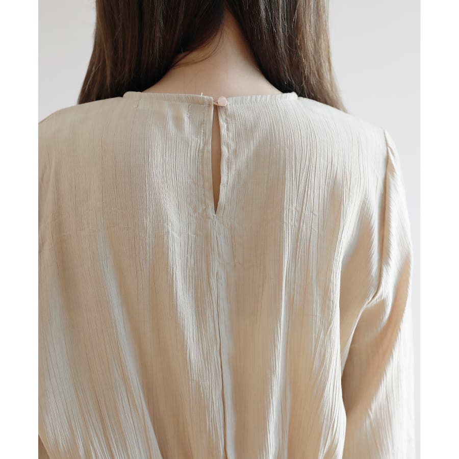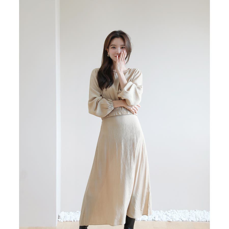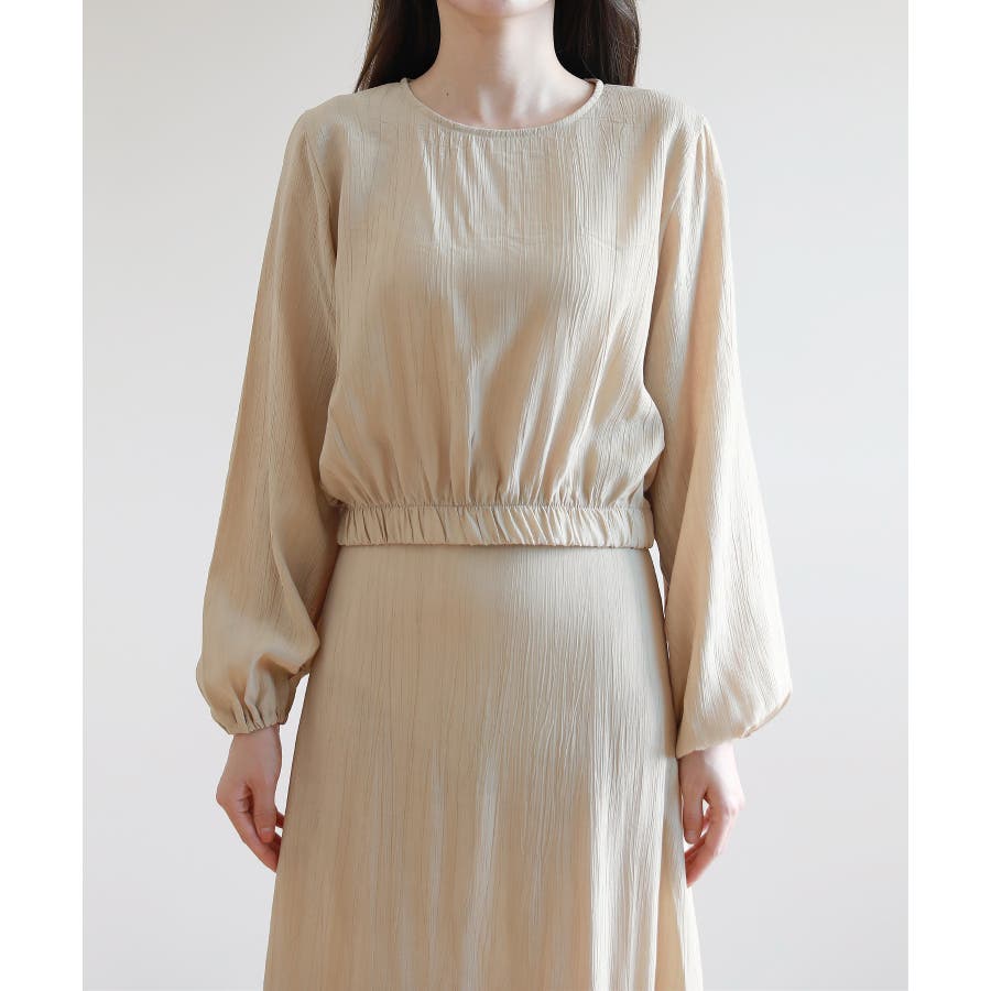 バンディング裾とポイント袖ディテールのブラウスとフレアデザインの