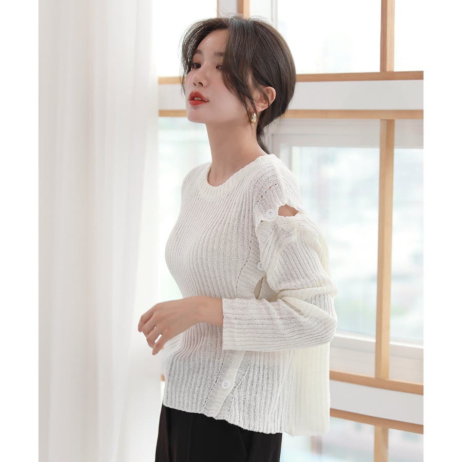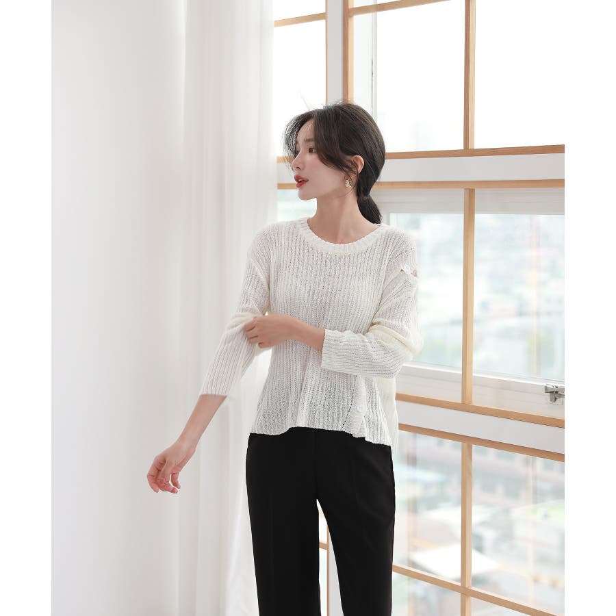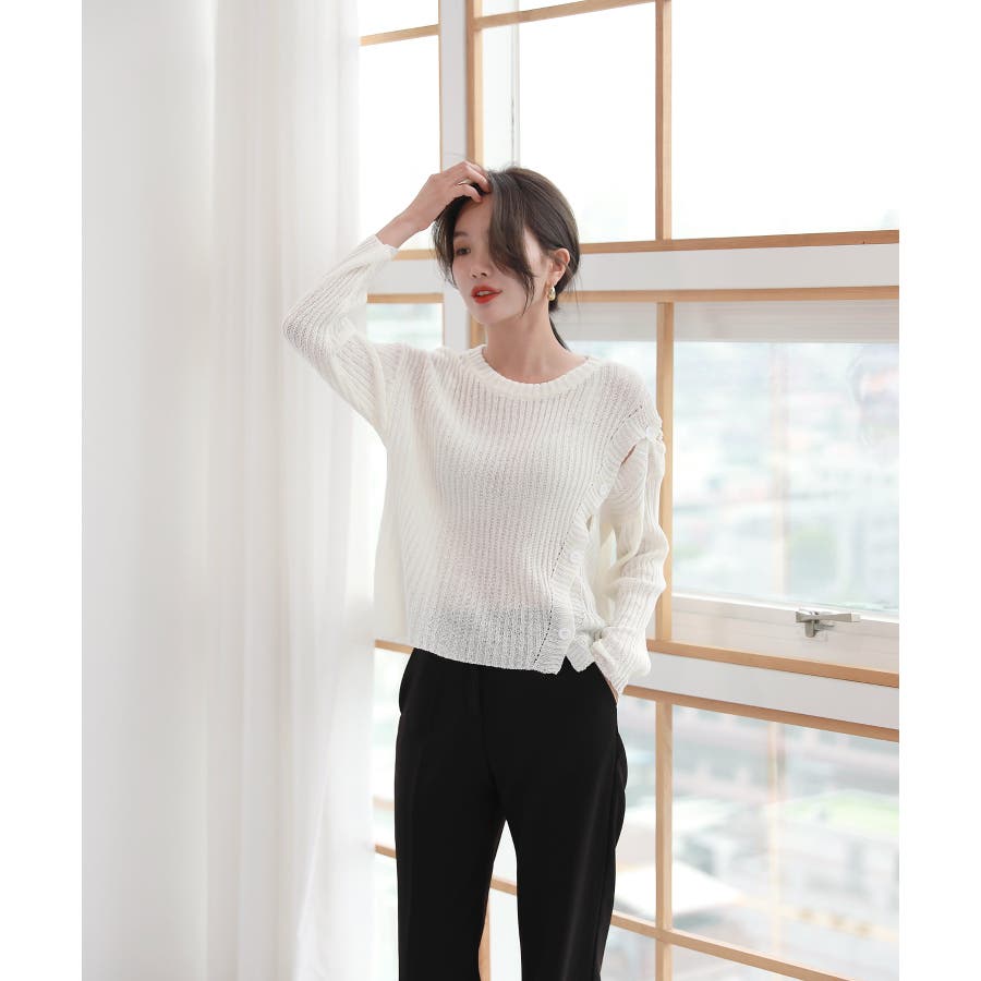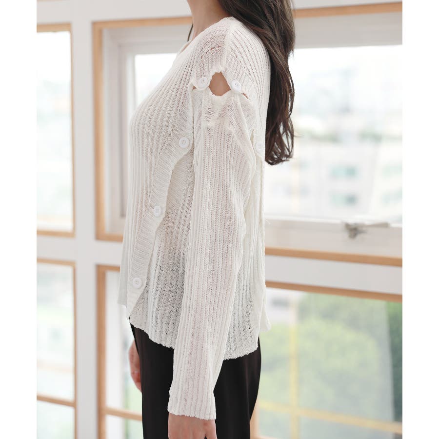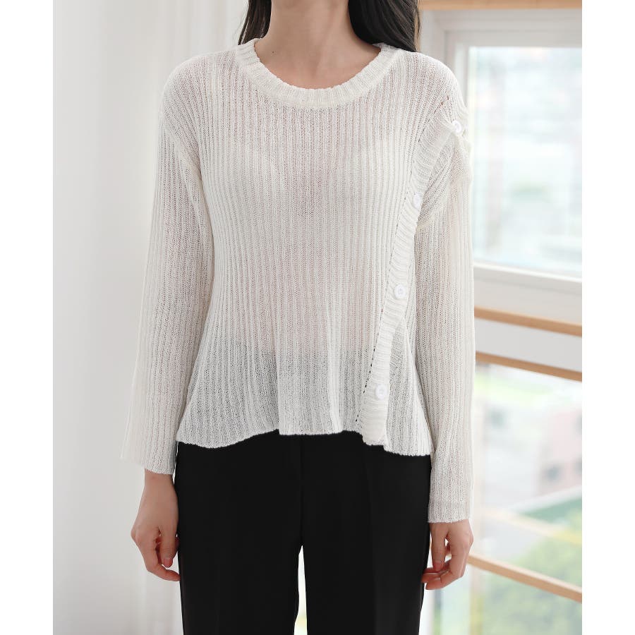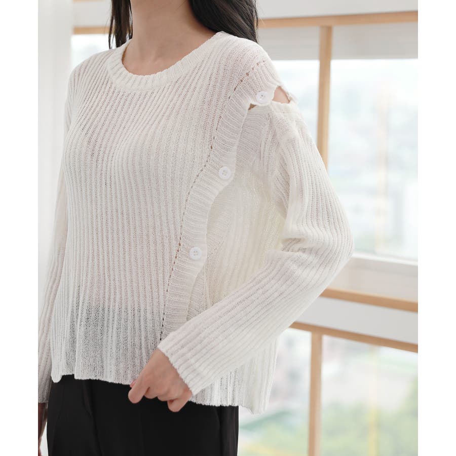 デイリー 斜め ボタン 肩 スリット ニット