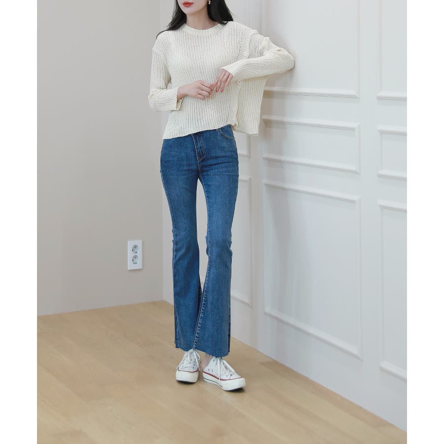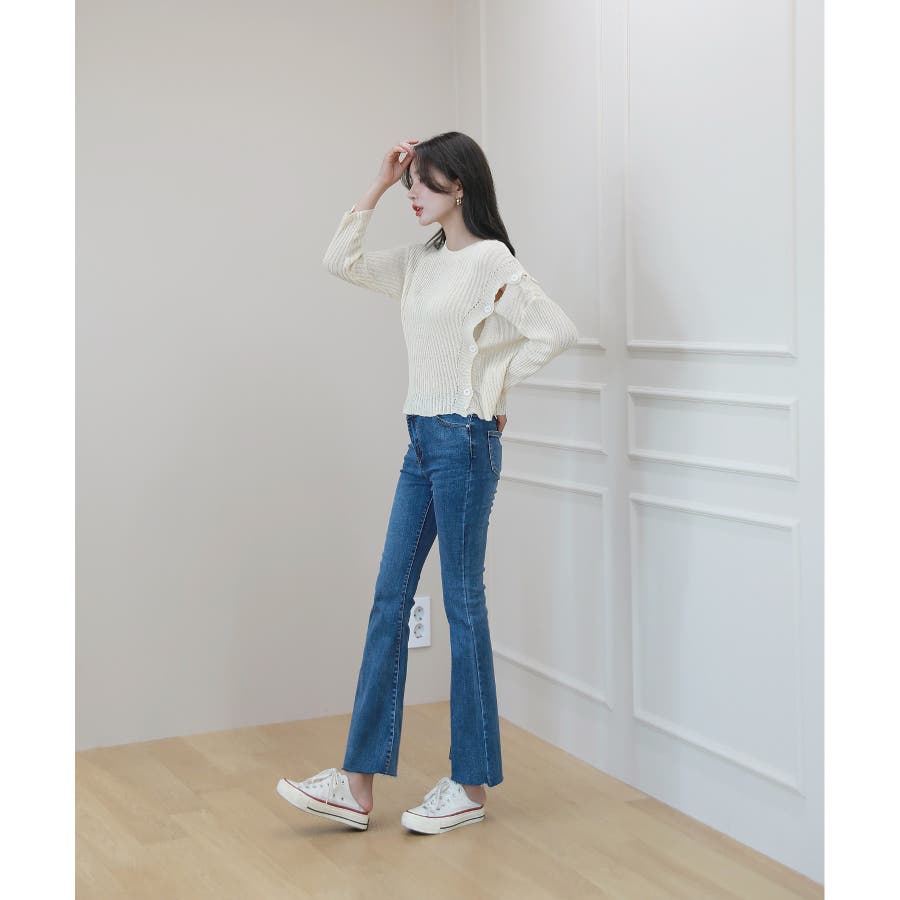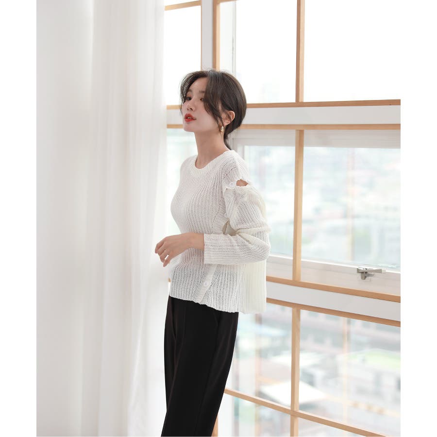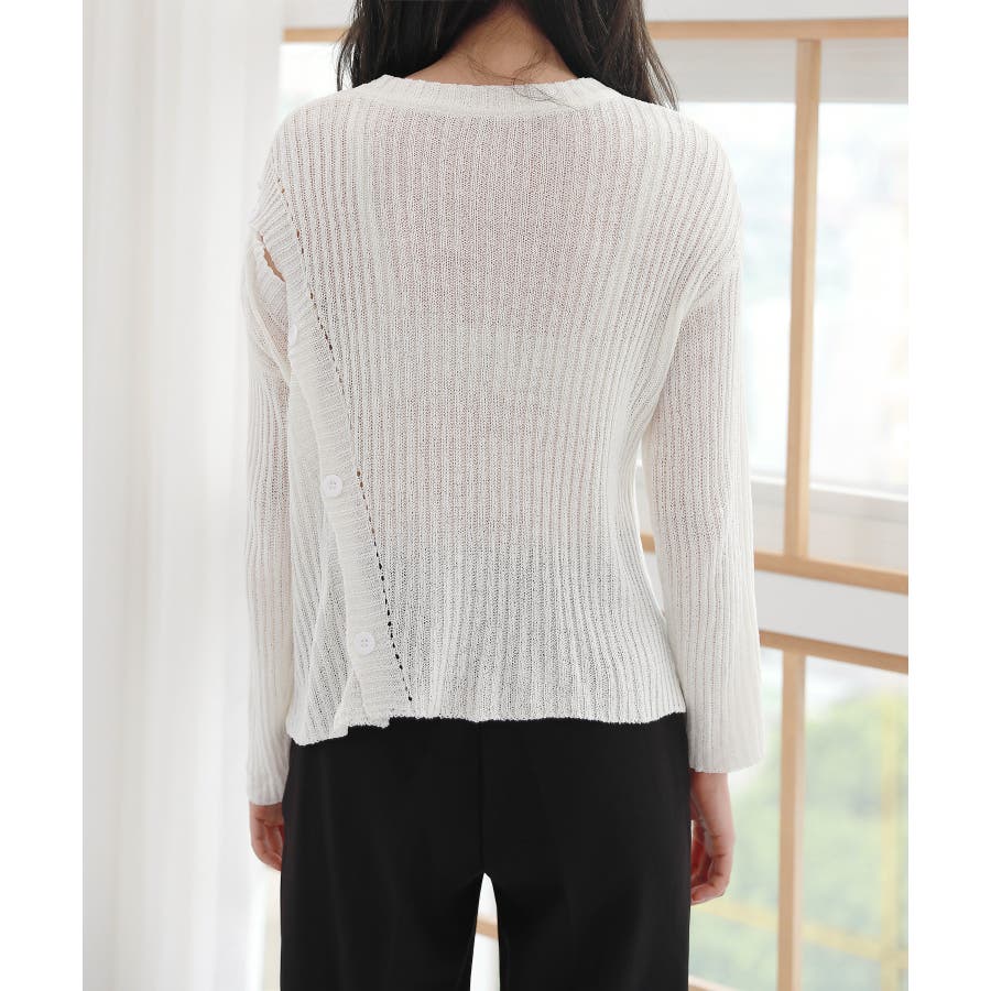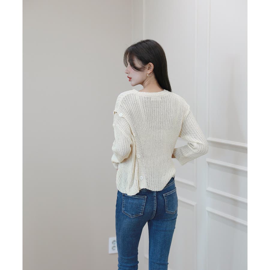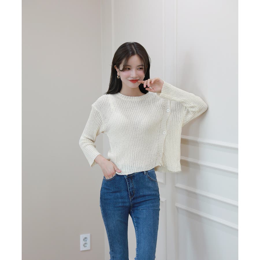 デイリー 斜め ボタン 肩 スリット ニット