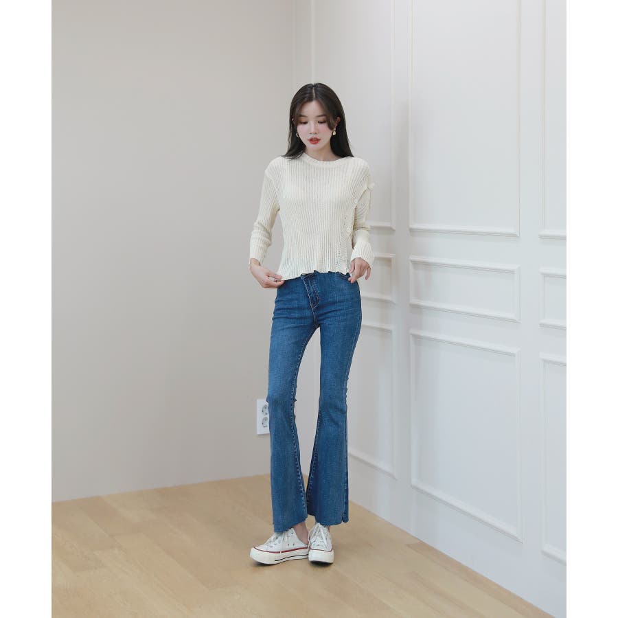 着心地はもちろん、ひらひらとしたシルエットを演出してくれるニットです。
