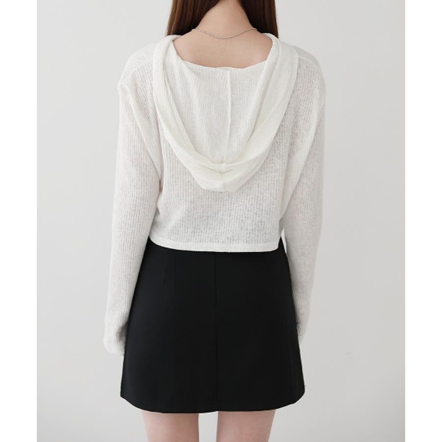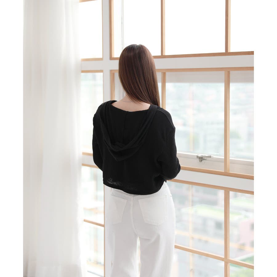 ひらひらとしたムードのクロップ丈に帽子がついていて地味ではなく