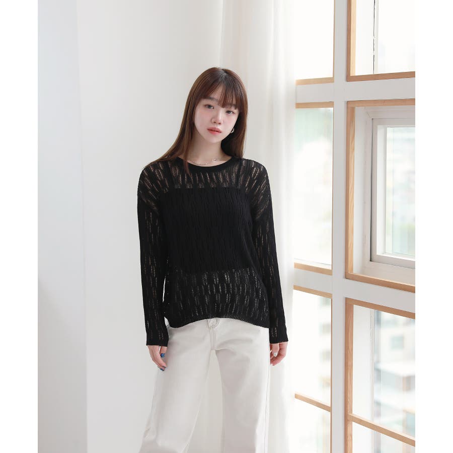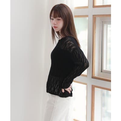 ウェーブ チュール 長袖 ニット