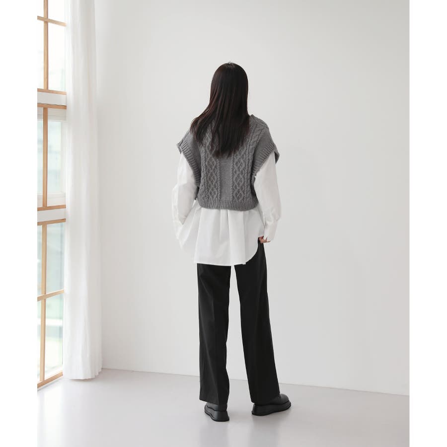 シャツやタートルネックなどと一緒にレイヤードしてコーディネートを