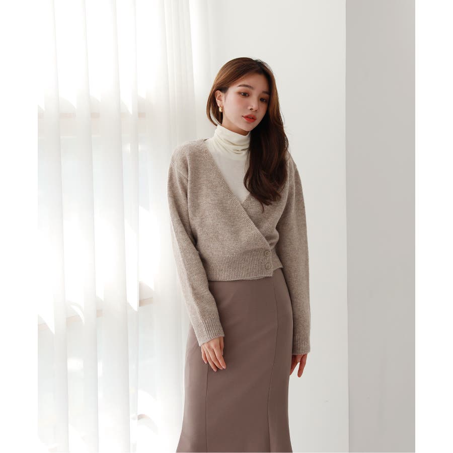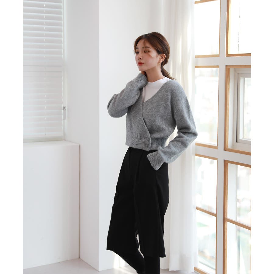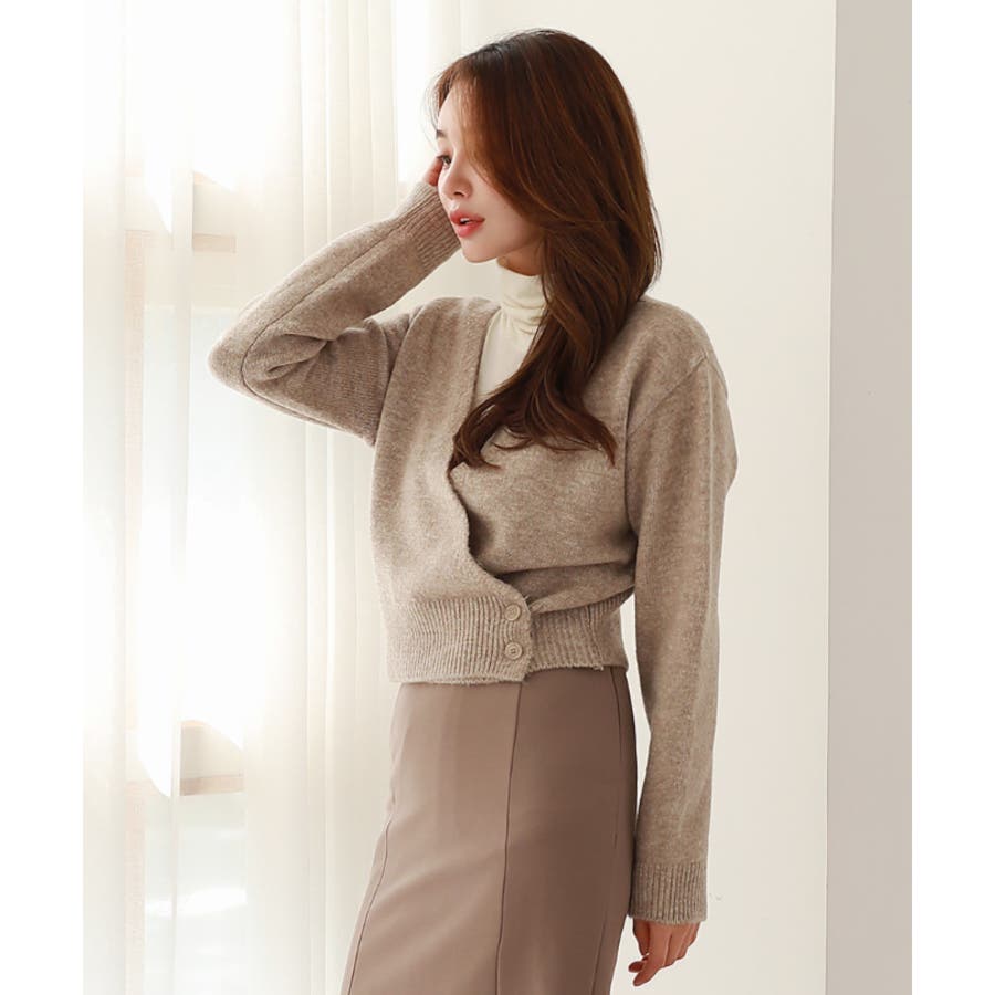 すっきりとしたフィット感で着用しやすいニットカーディガンを紹介します。