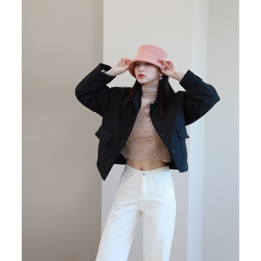 ネックカラーのデザインと大きなポケットがラブリーな感性をプラスし