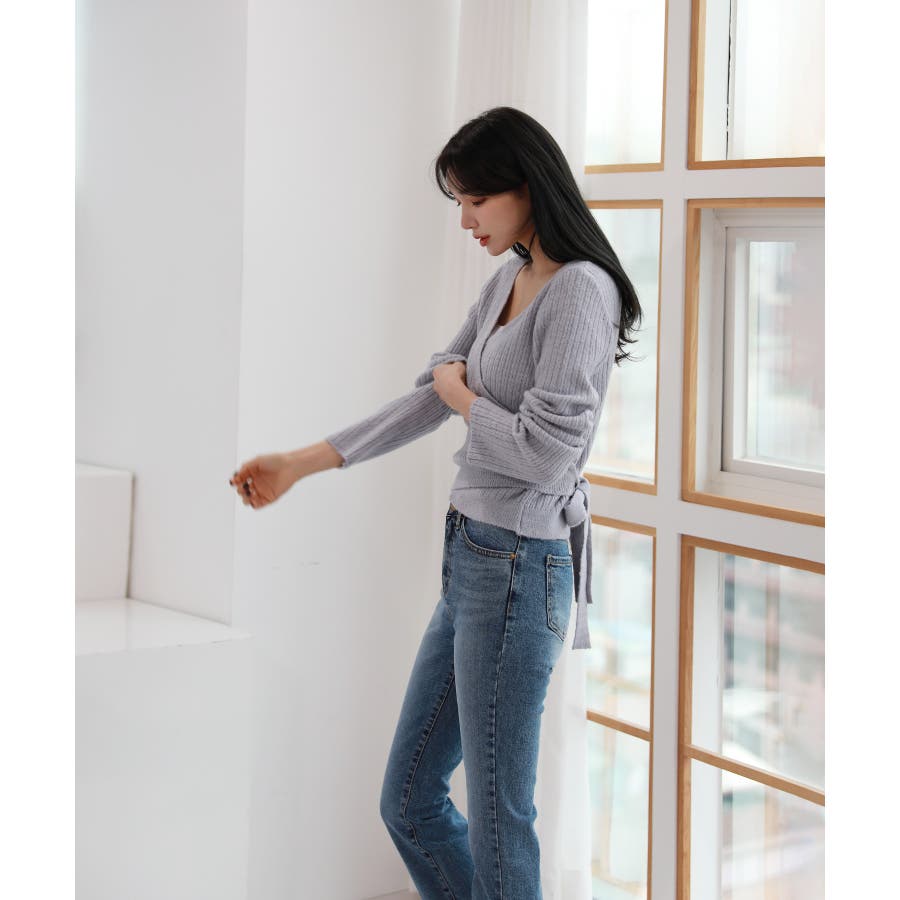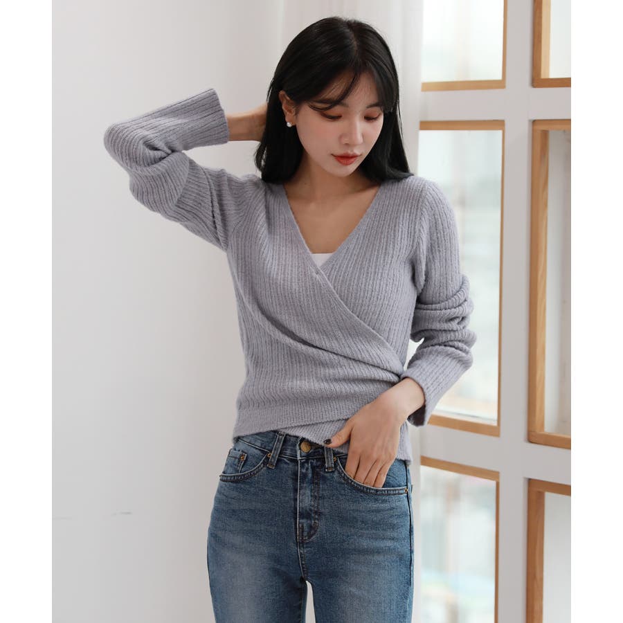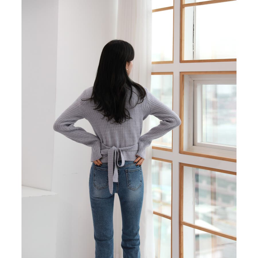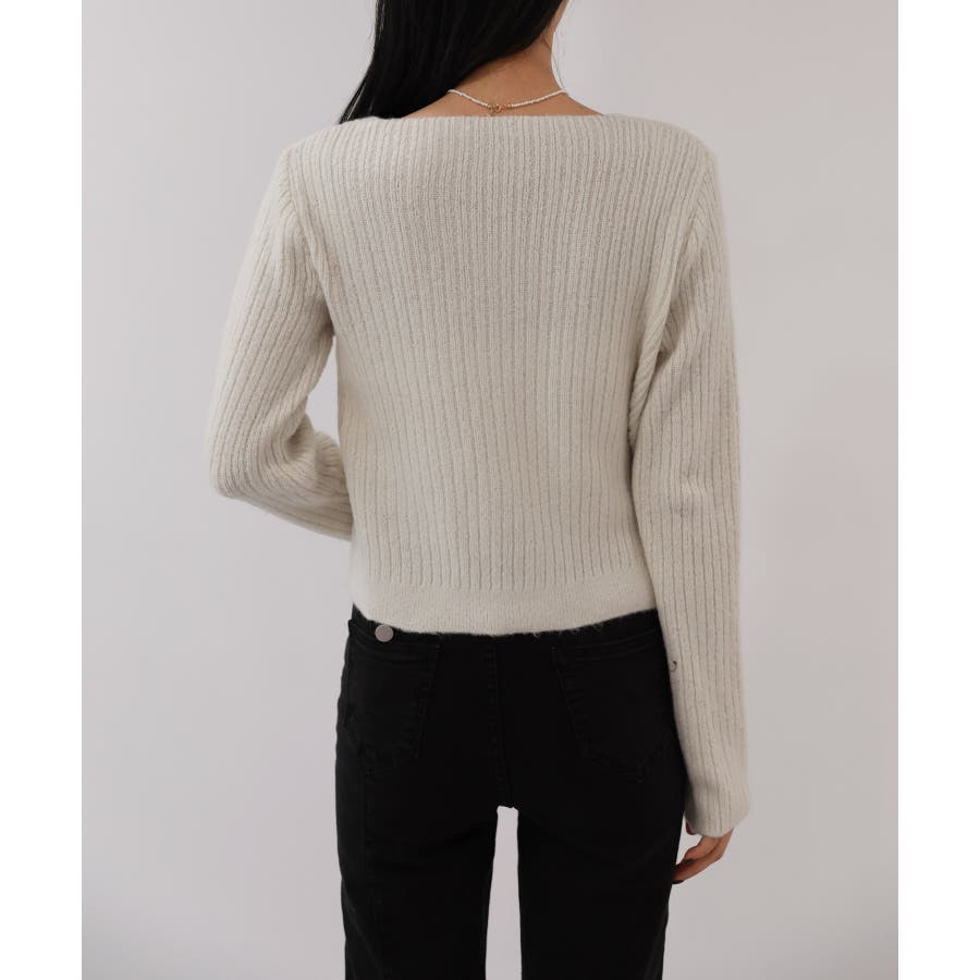Vネックラップリブカーディガン