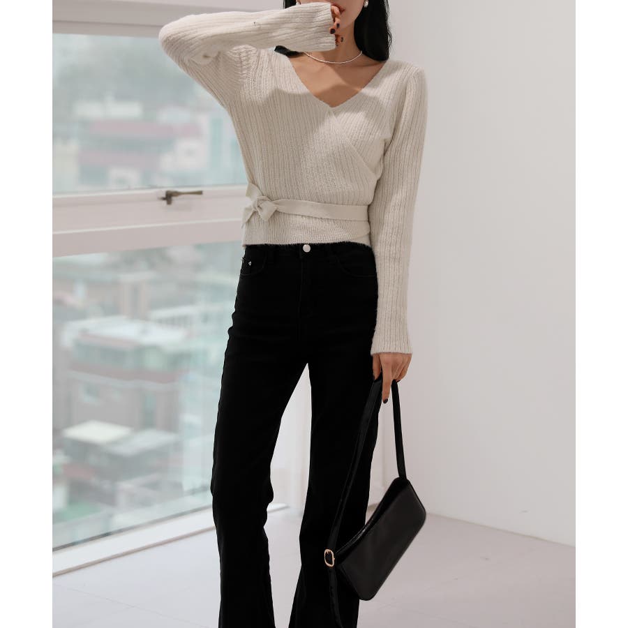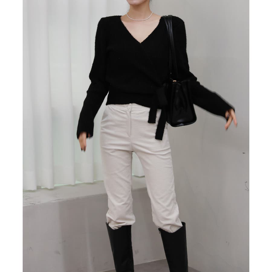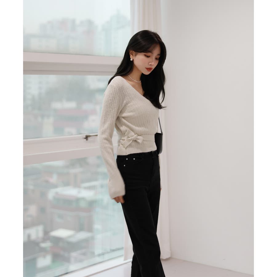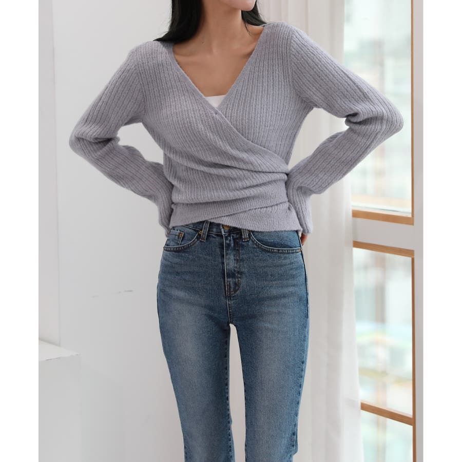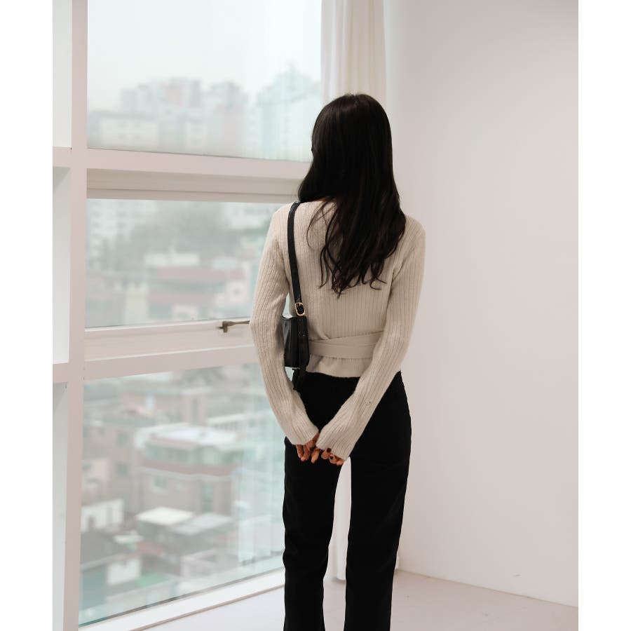 Vネックラップリブカーディガン