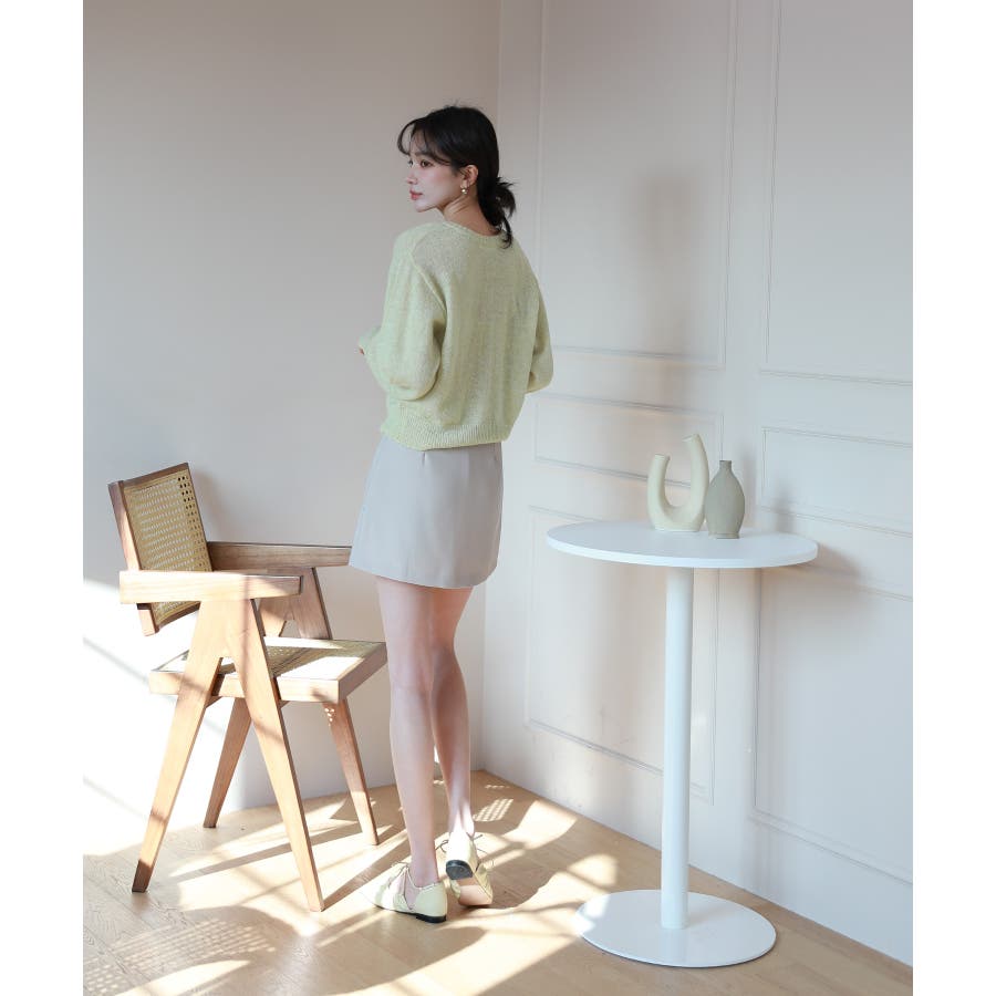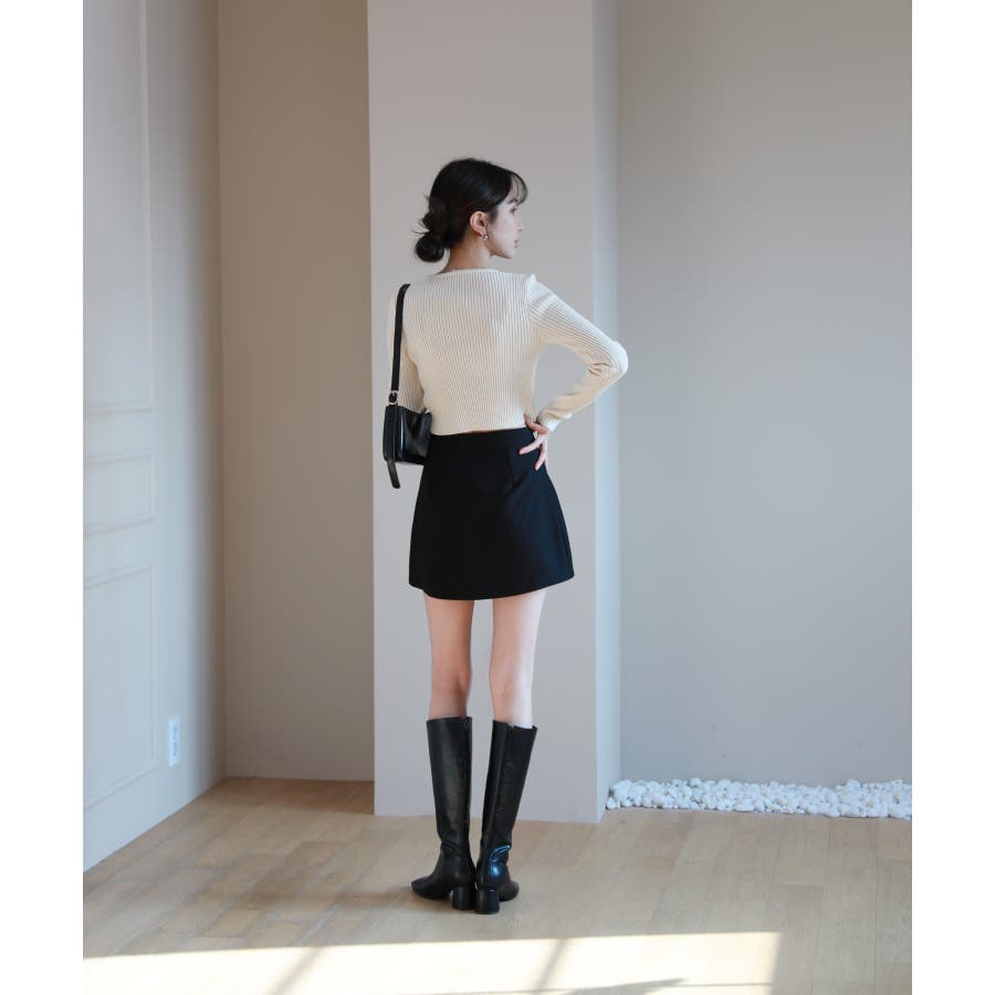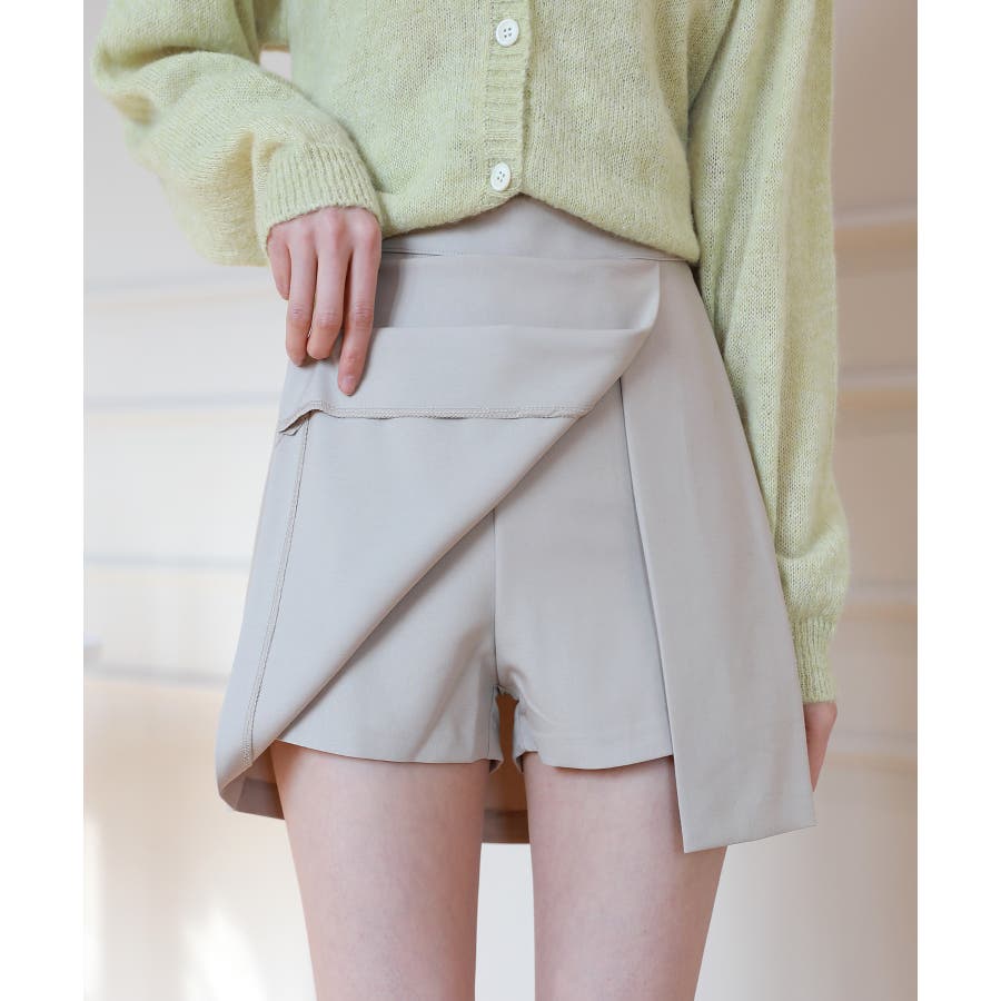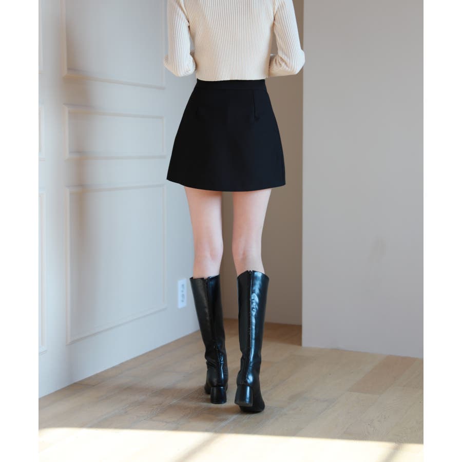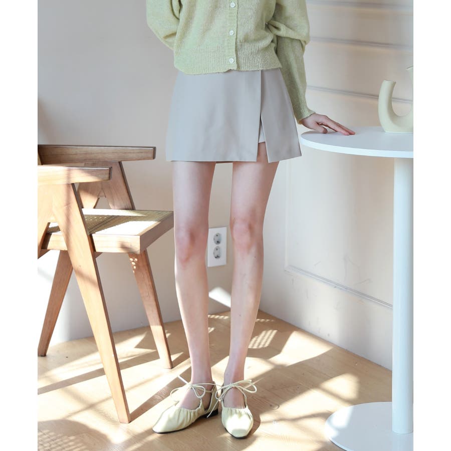 どんなコーデにもさりげないポイントになるスカートで、同じ素材のパンツの裏地が付いているので、ミニ丈でも気軽に着用可能です:)